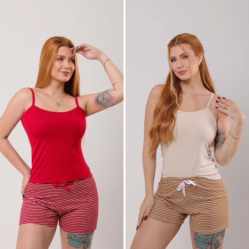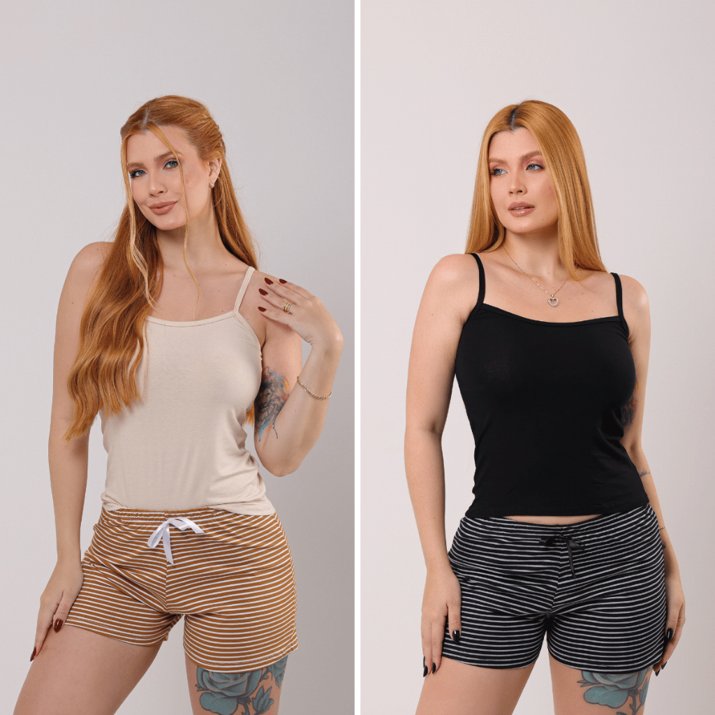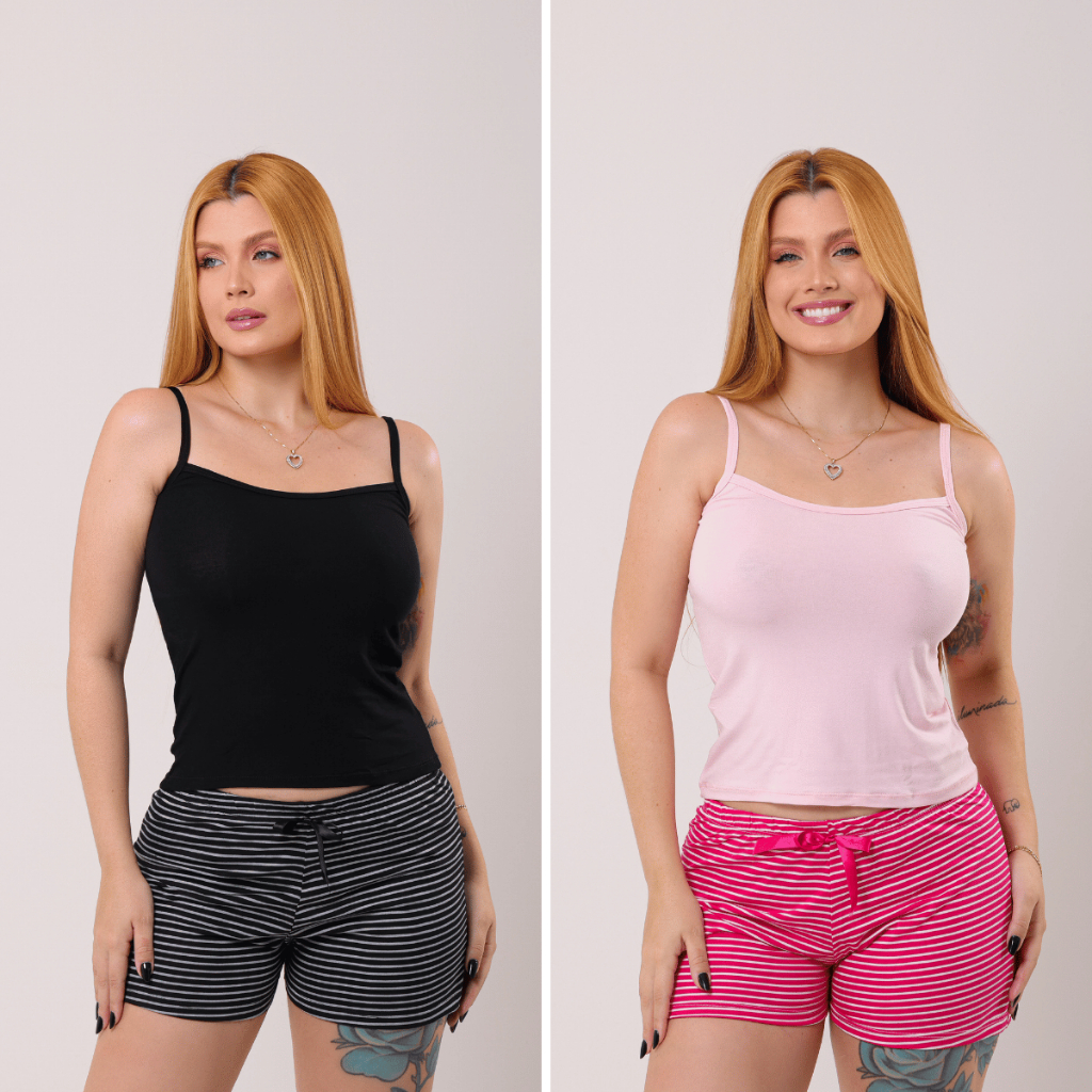 Kit 2 Conjunto Baby Doll Pijama Feminino Listrado Viscolaicra Para Dormir Sexy Premium