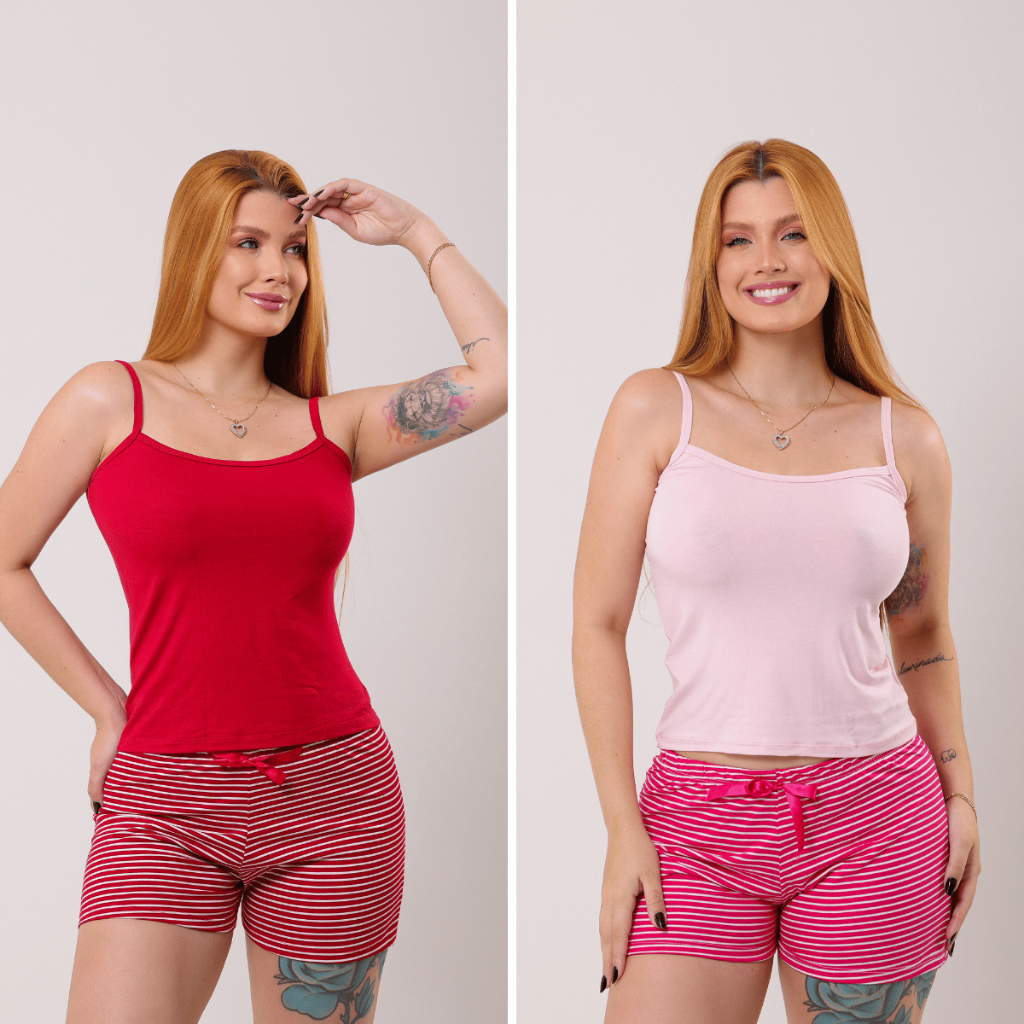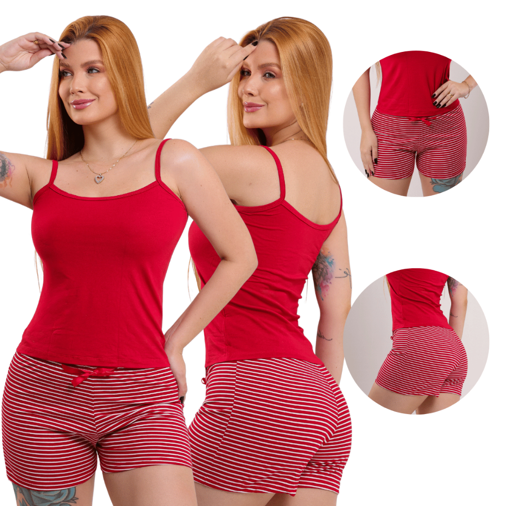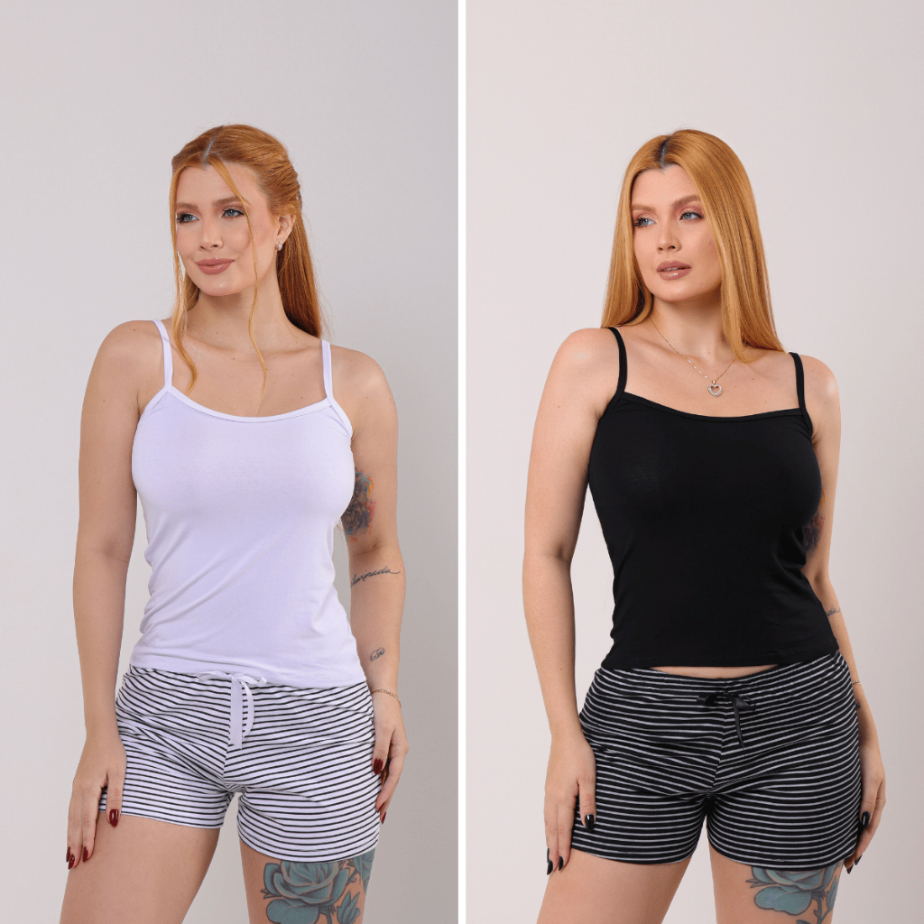 Kit 2 Conjunto Baby Doll Pijama Feminino Listrado Viscolaicra Para Dormir Sexy Premium