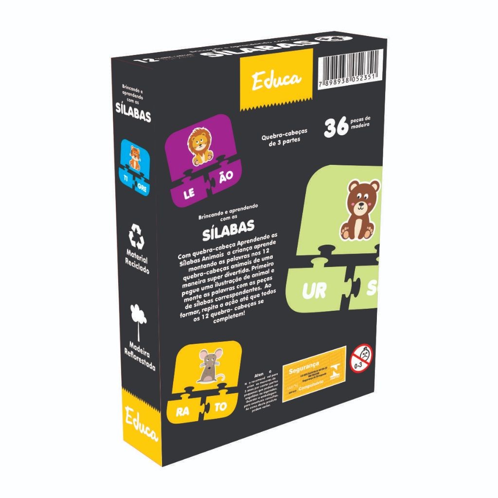 Sílabas Quebra-cabeça Educativo Pedagógico Alfabetização Infantil Madeira