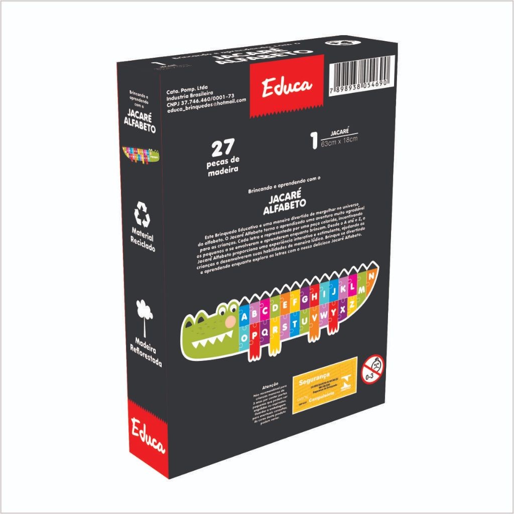 Quebra Cabeça Didático Jacaré Mdf Letras Alfabeto Educativo Pedagógico Madeira