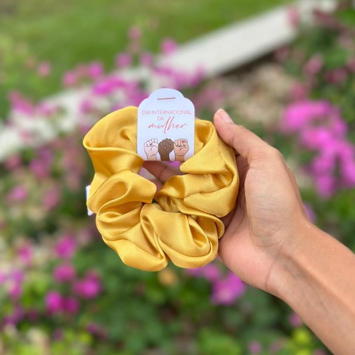 100 scrunchie xuxinha de cetim para cabelo antifrizz com etiqueta personalizada da sua marca e tag