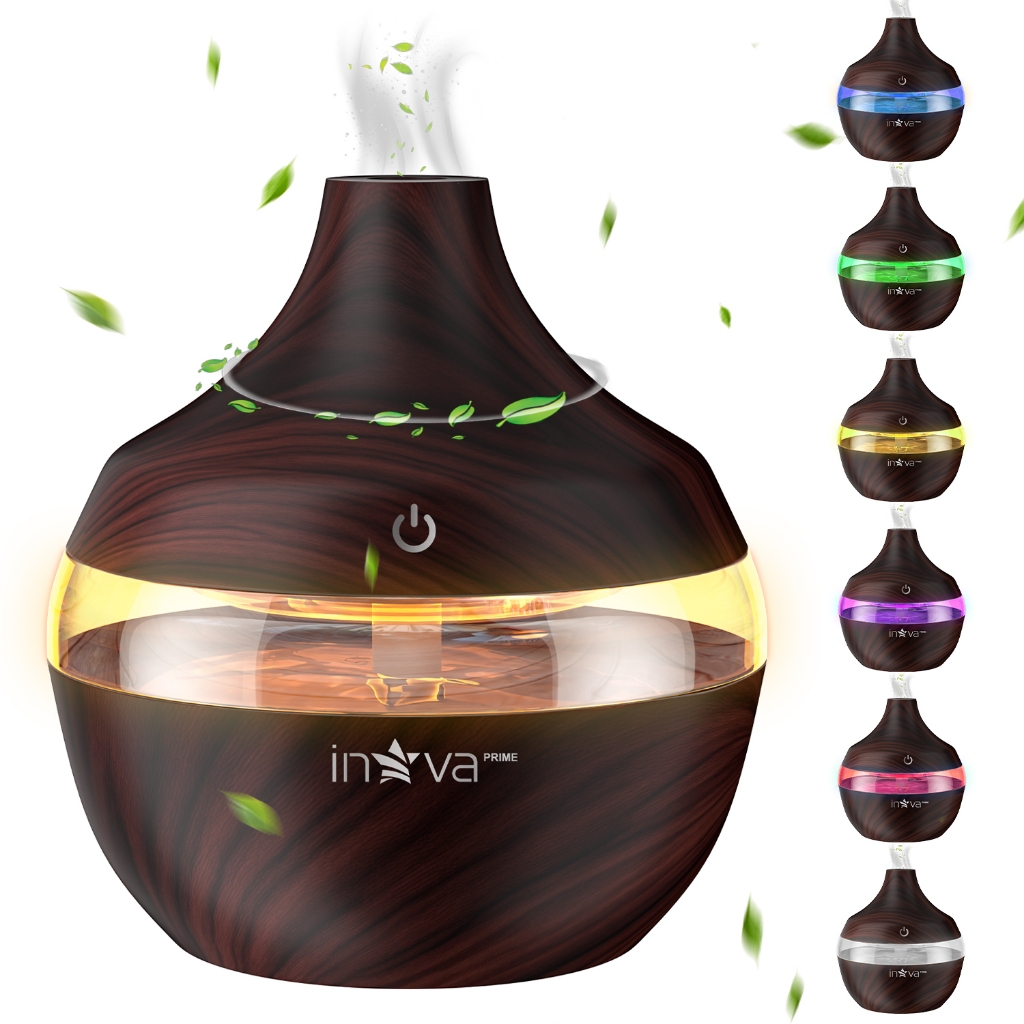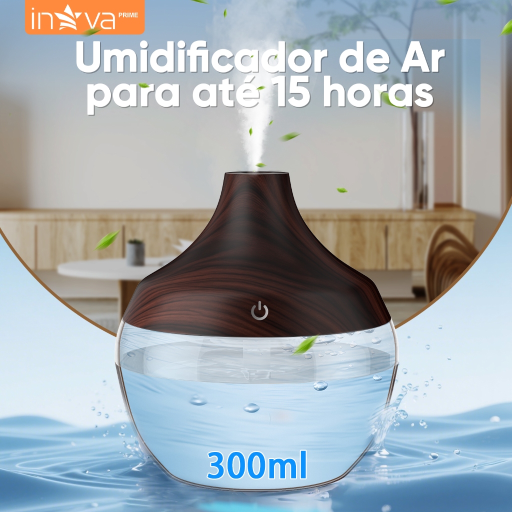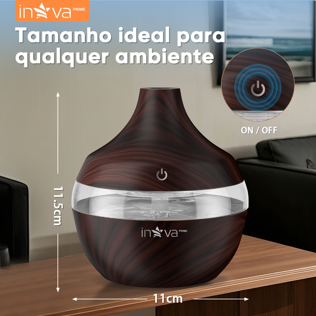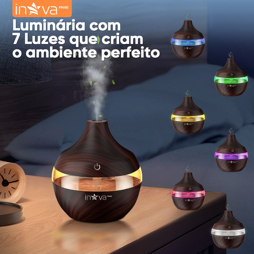 INOVA Umidificador Ultrassônico Aromaterapia Óleos Essenciais LED Peles Sensíveis 300ML