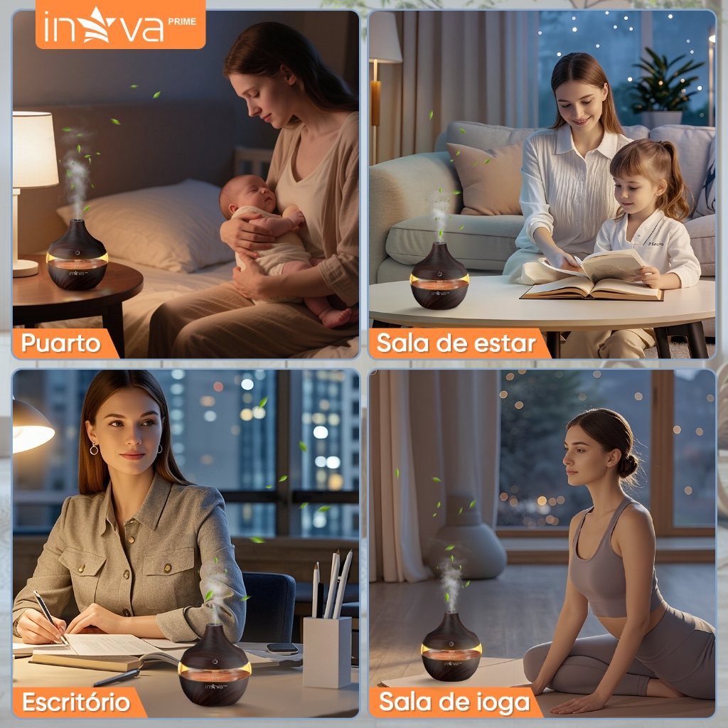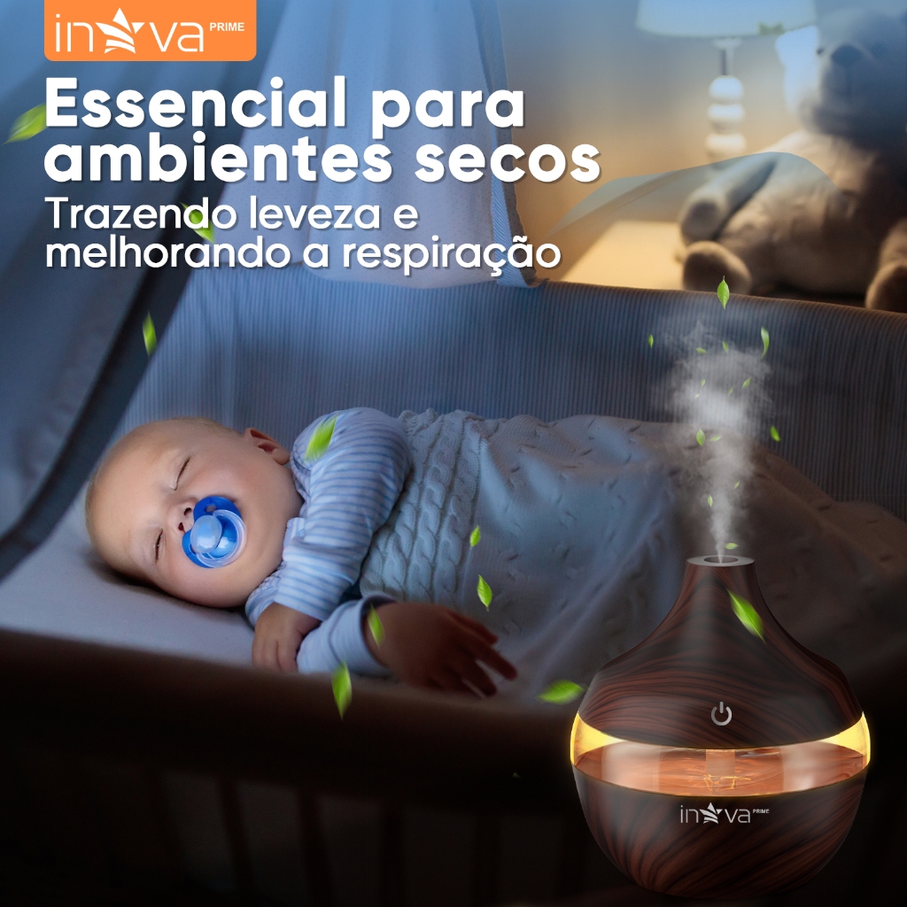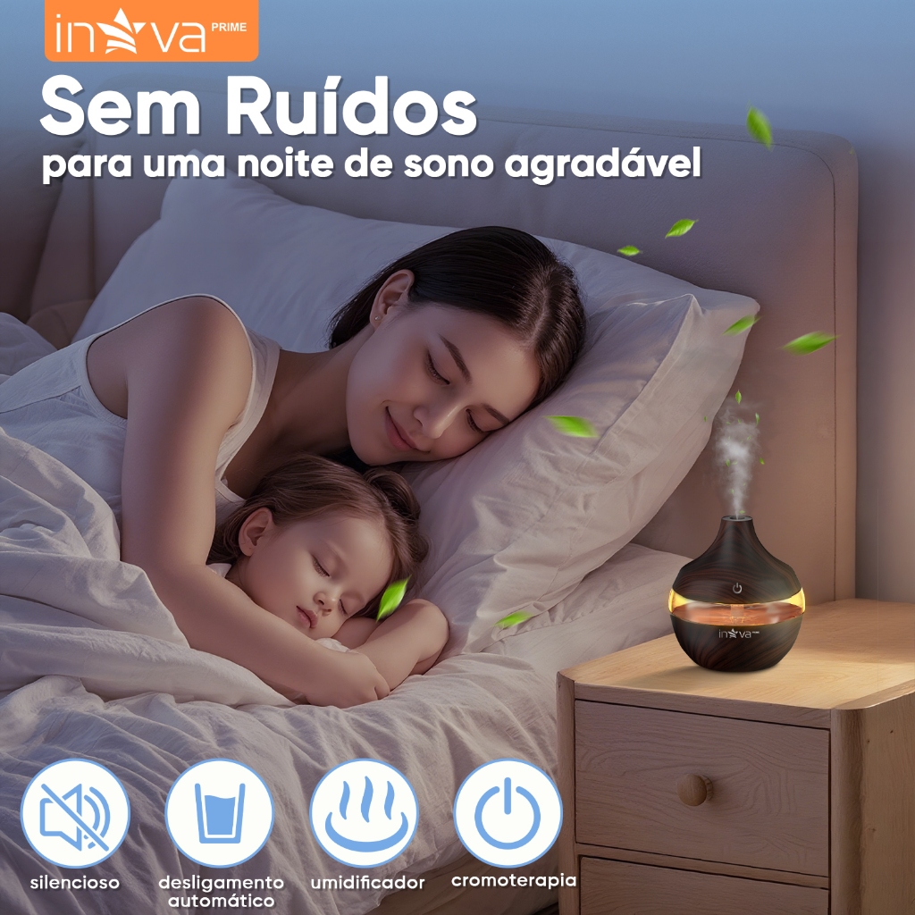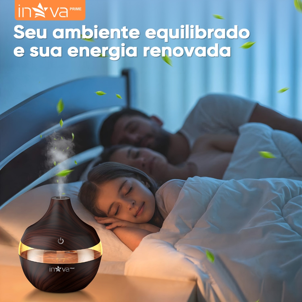 INOVA Umidificador Ultrassônico Aromaterapia Óleos Essenciais LED Peles Sensíveis 300ML