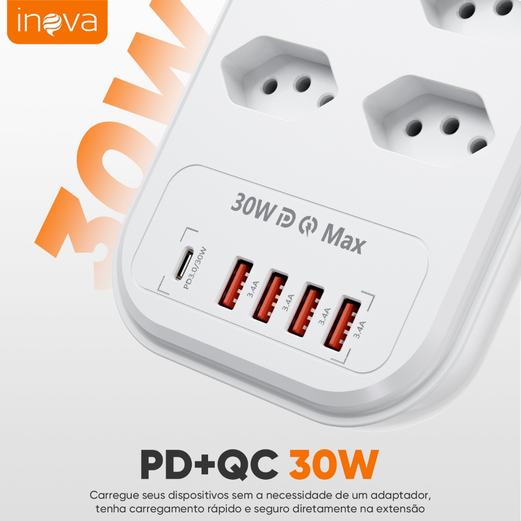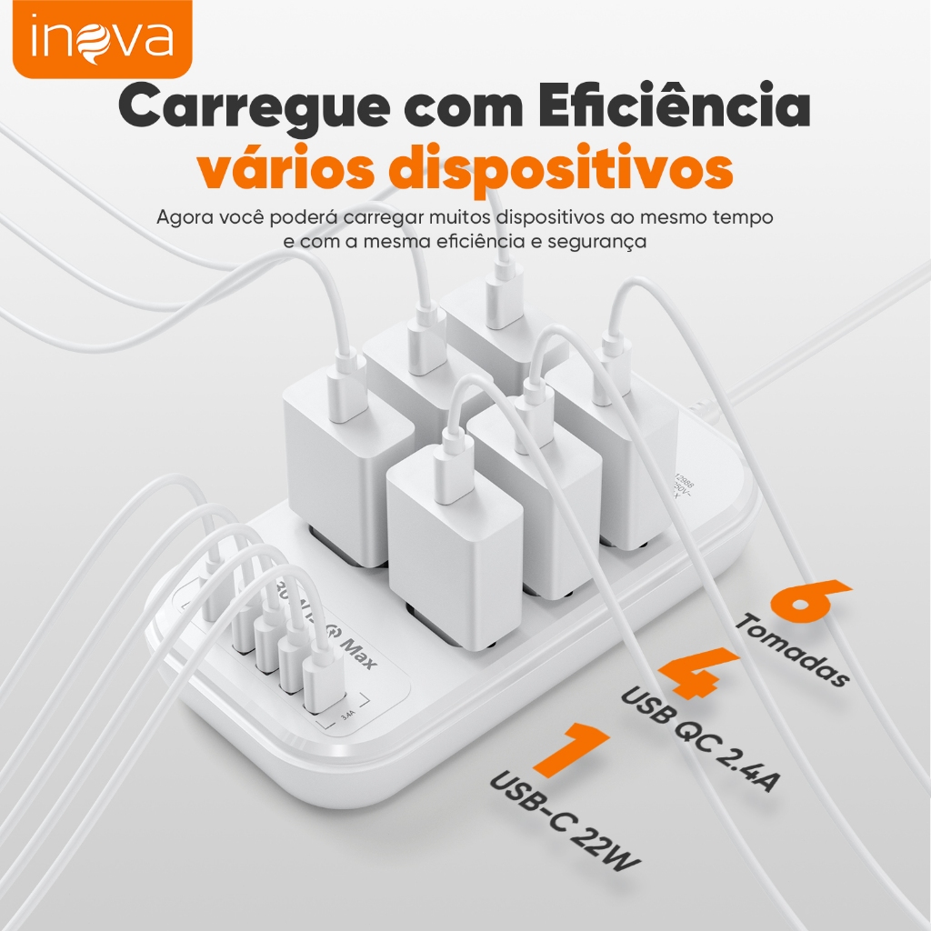 INOVA 2m Régua Filtro de Linha Filtro de linha com protetor contra curtos (DPS) 110/220V extensão de tomada