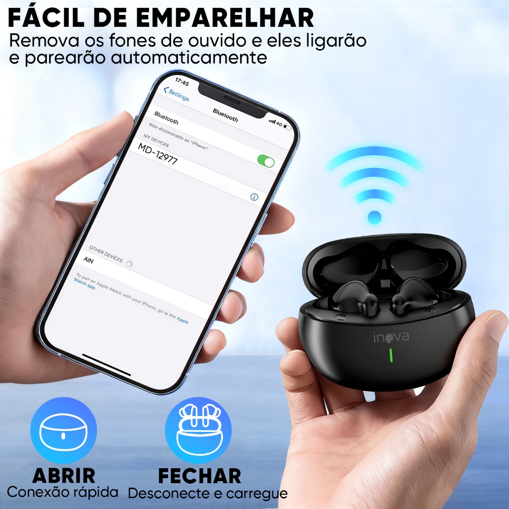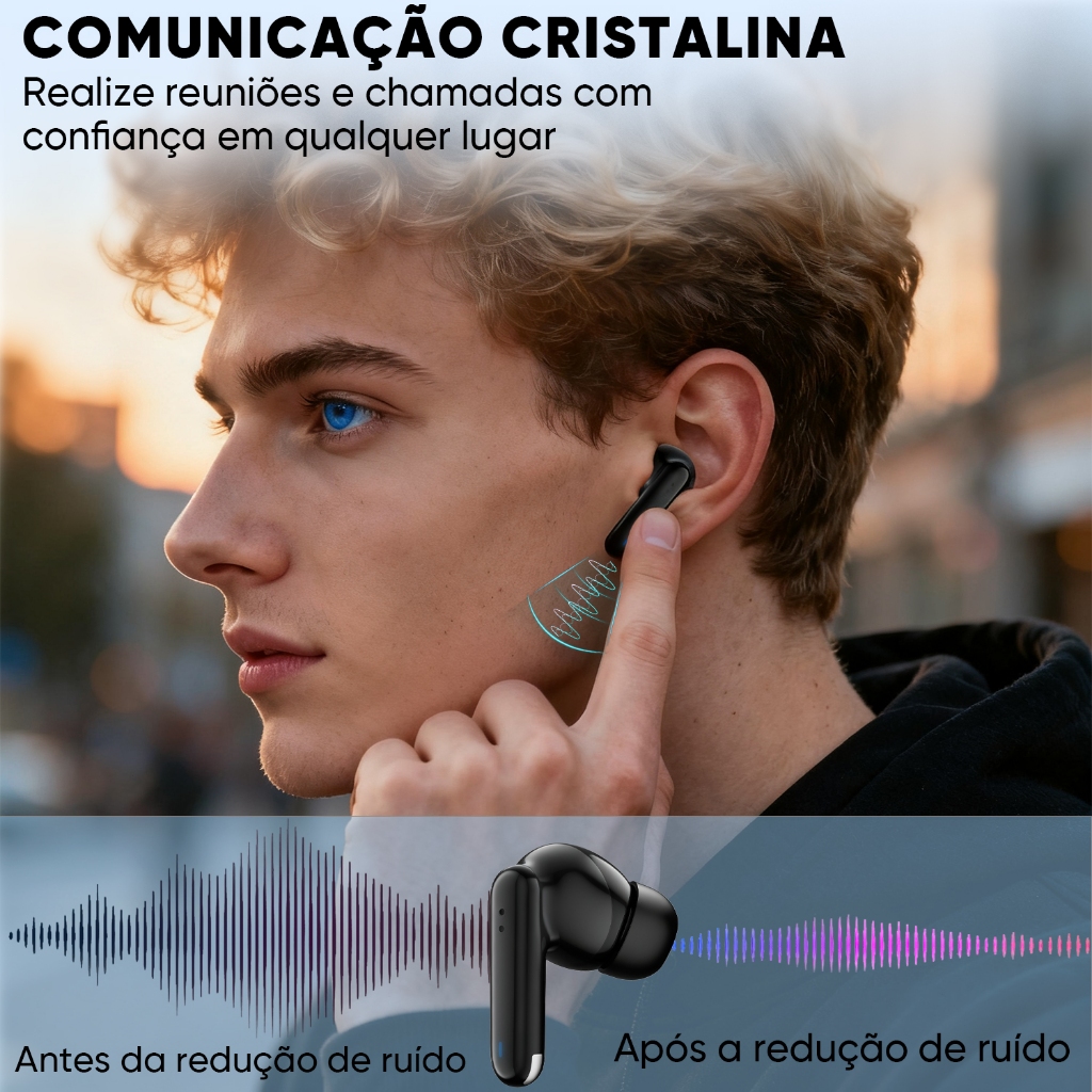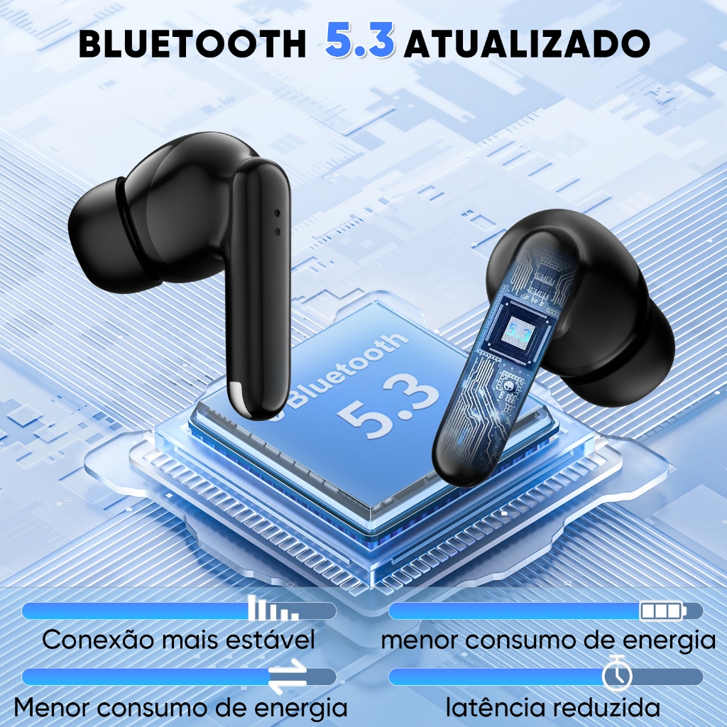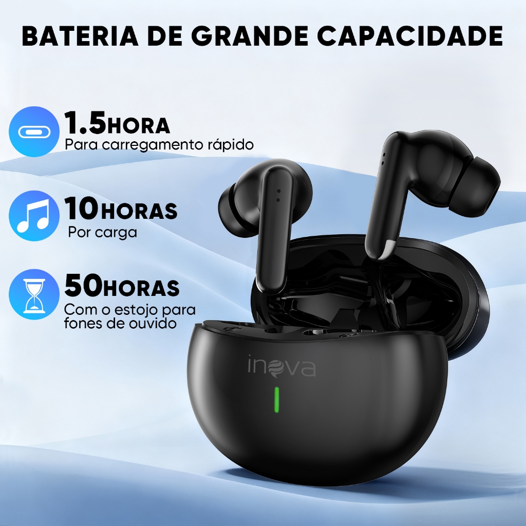 INOVA Fone de Ouvido Bluetooth 5.3 com Cancelamento de Ruído e 50h de Bateria