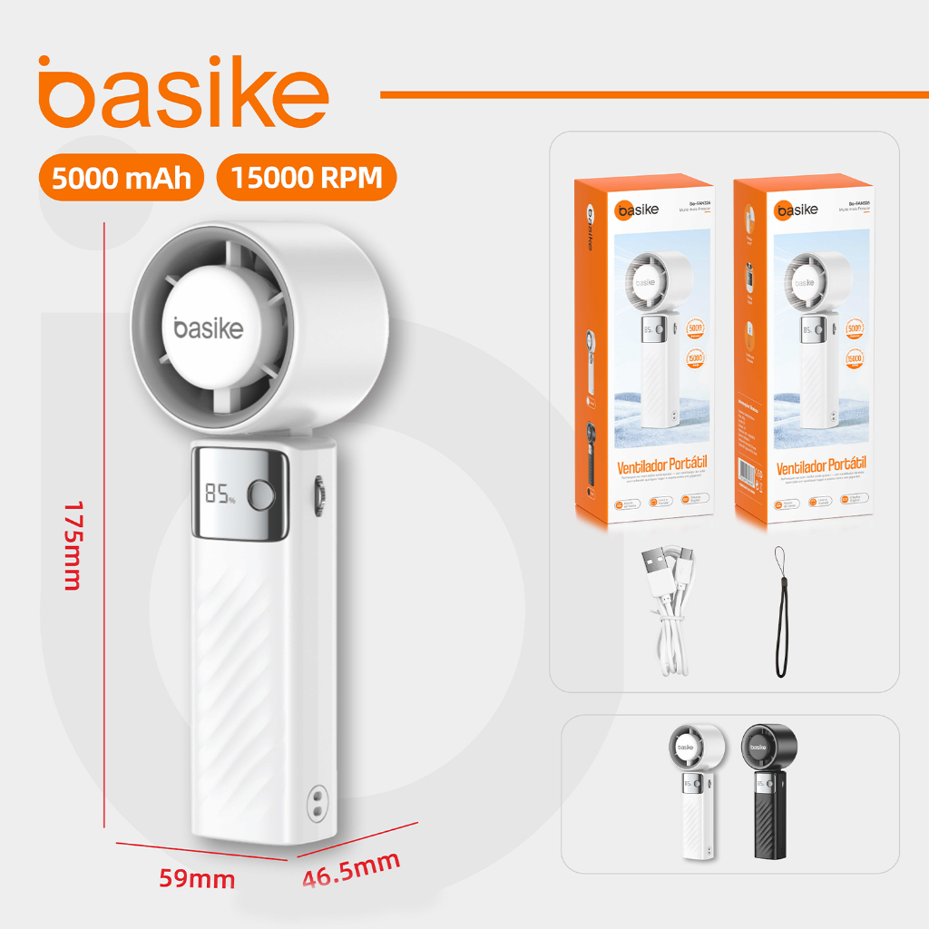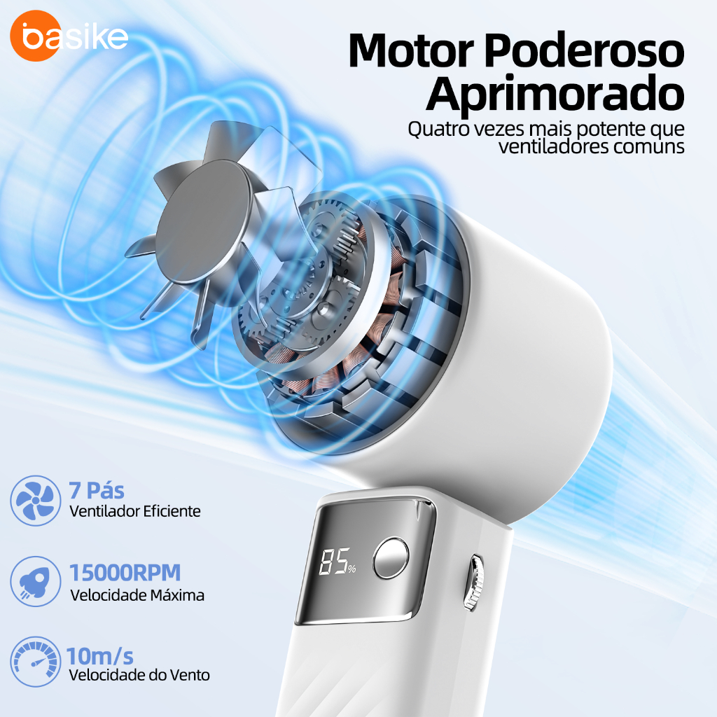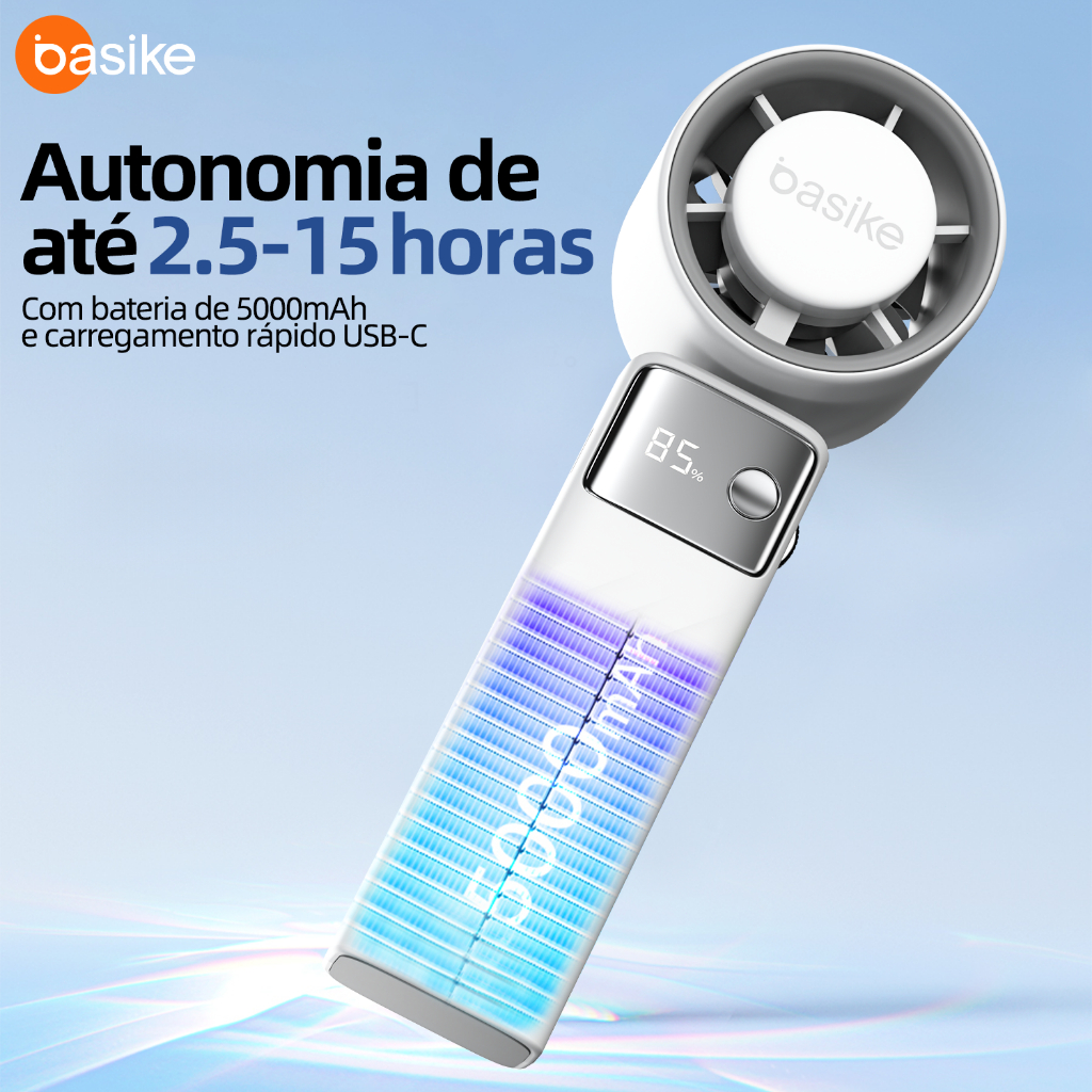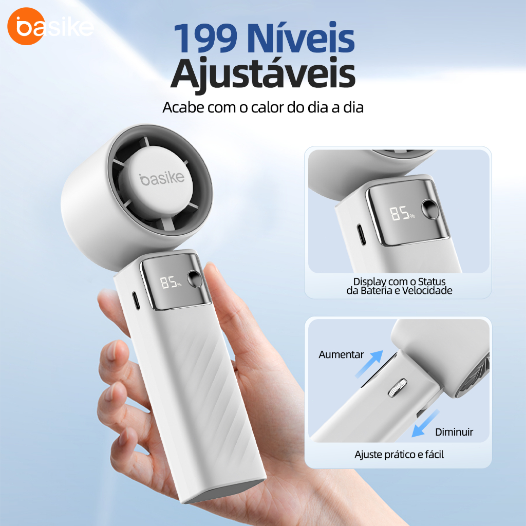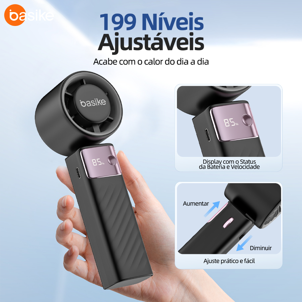 BASIKE Ventilador Portátil 5000mAh 199 Níveis 15000 RPM Bateria Longa Duracao USB-C