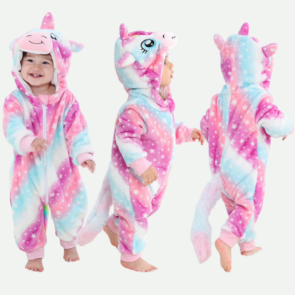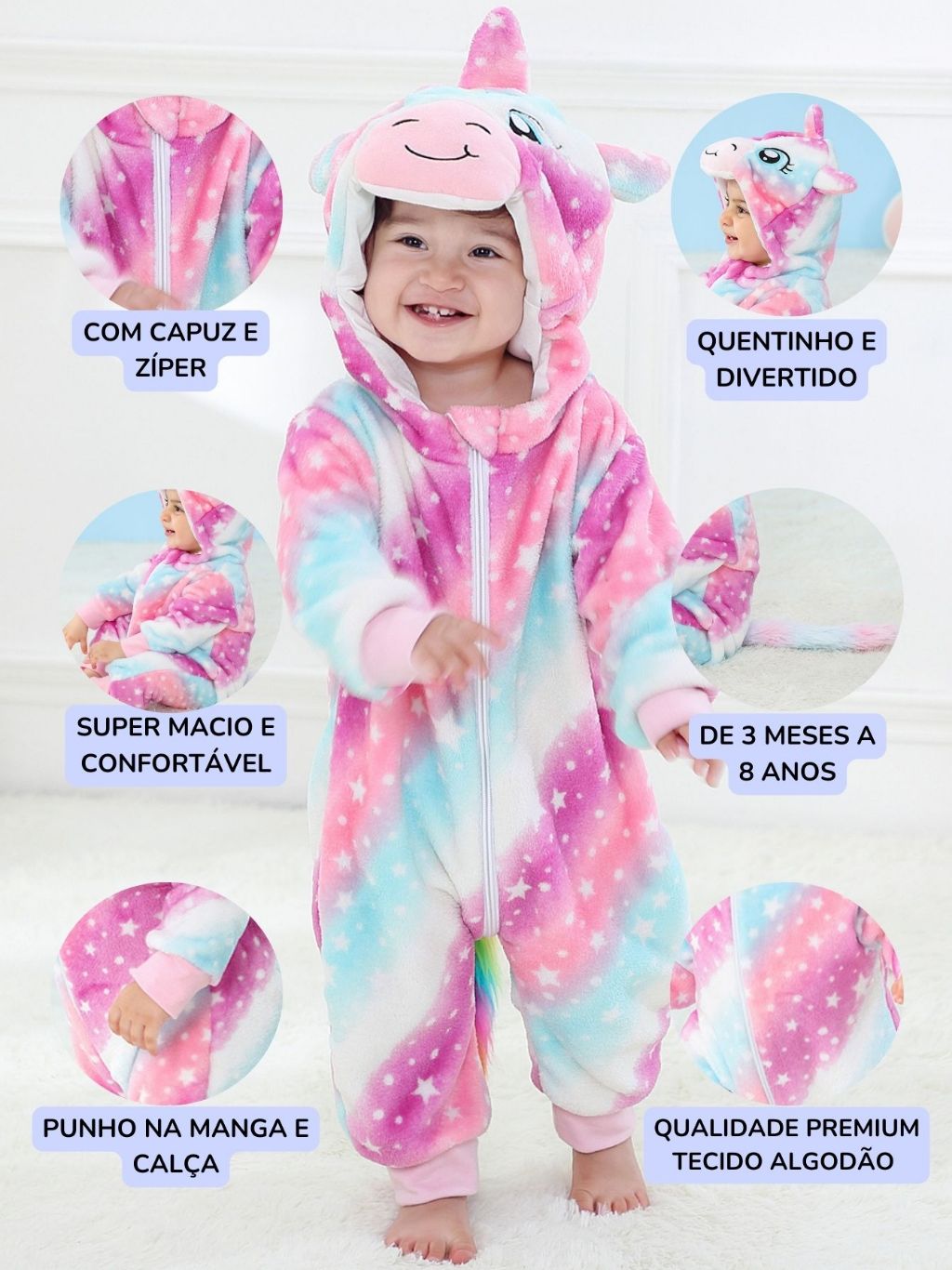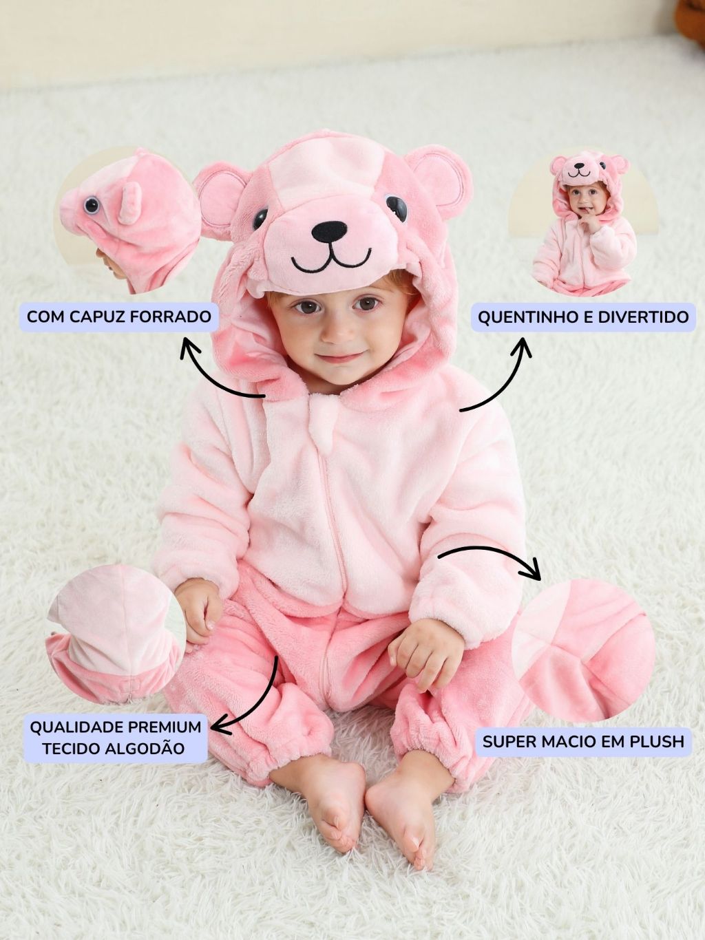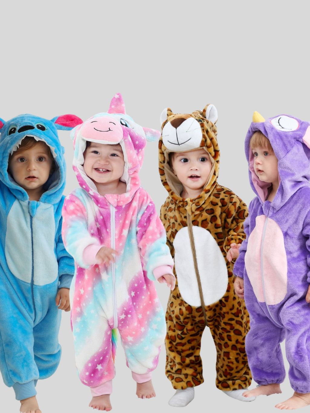 Macacão Infantil Menina Bebê Menino Inverno Quentinho Plush Kigurumi Stitch com Zíper Bichinhos