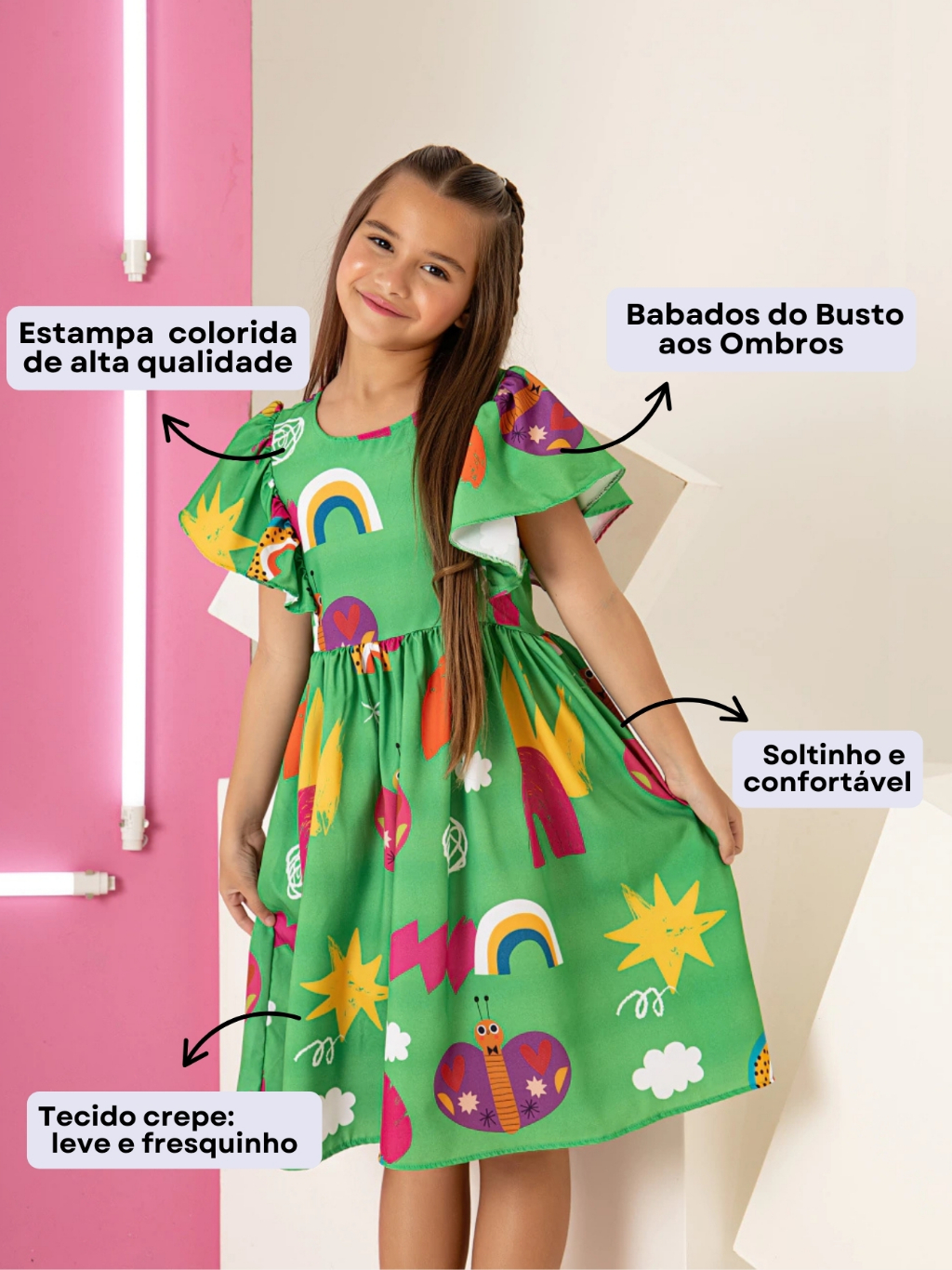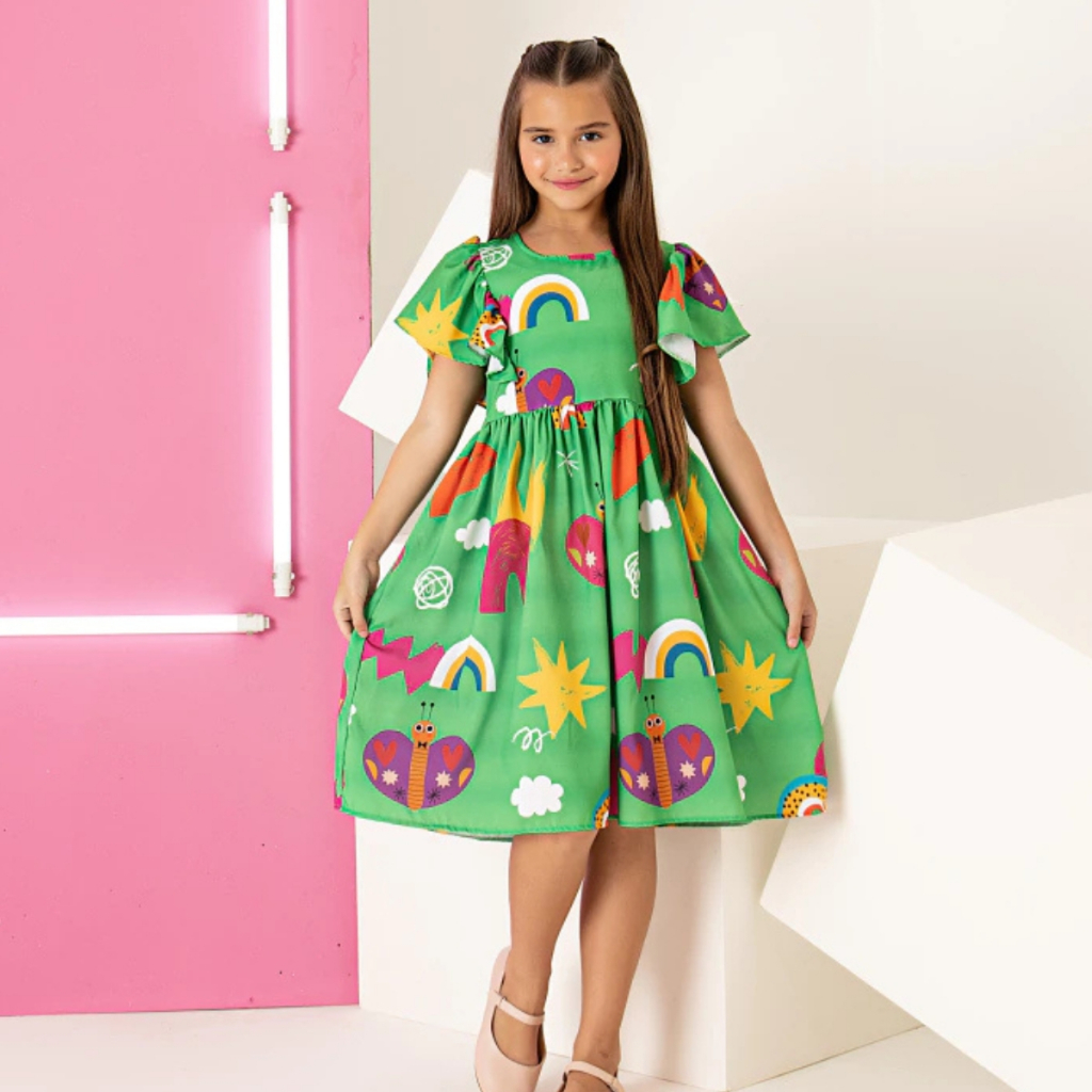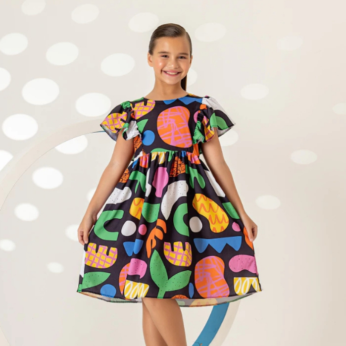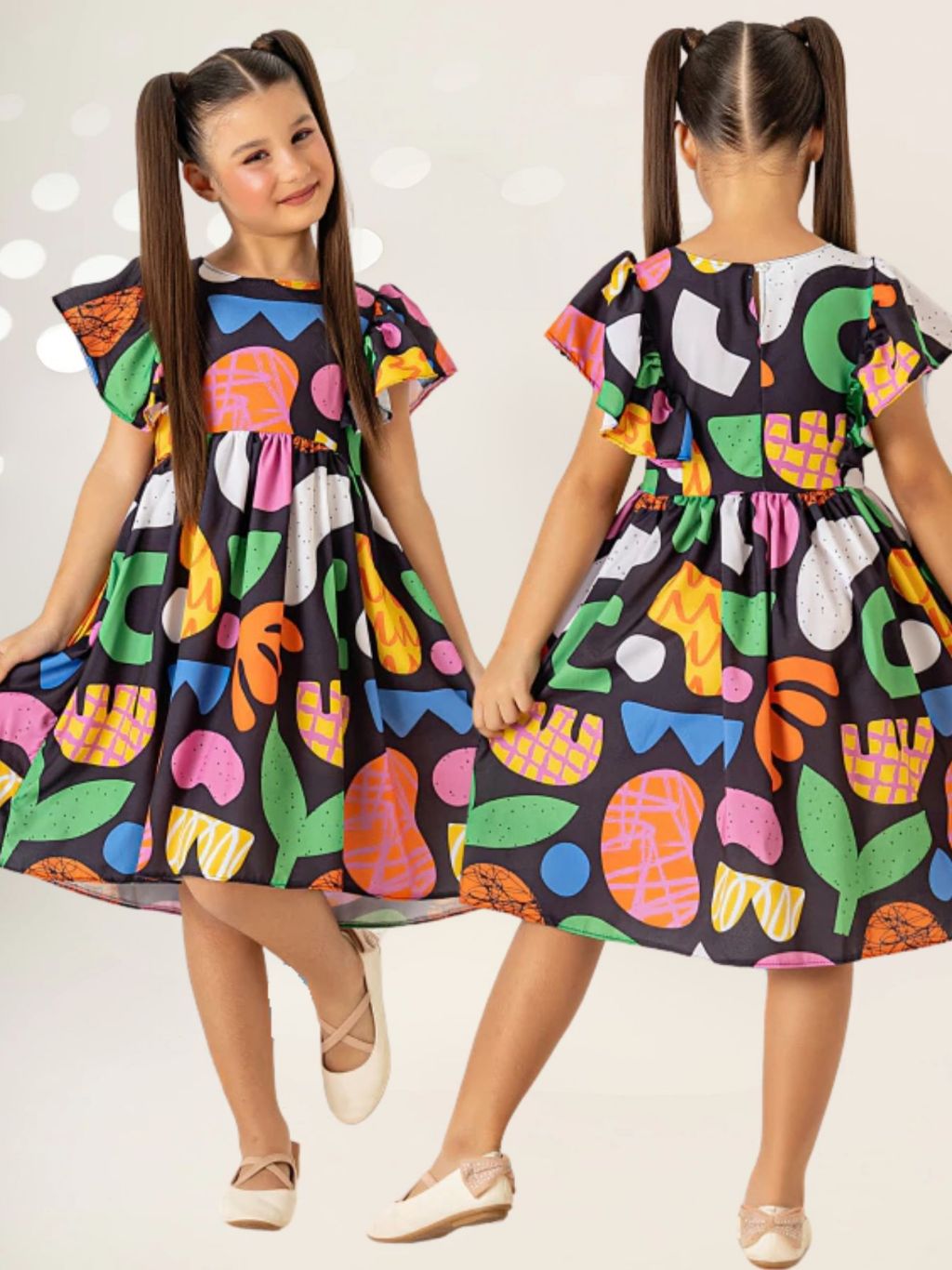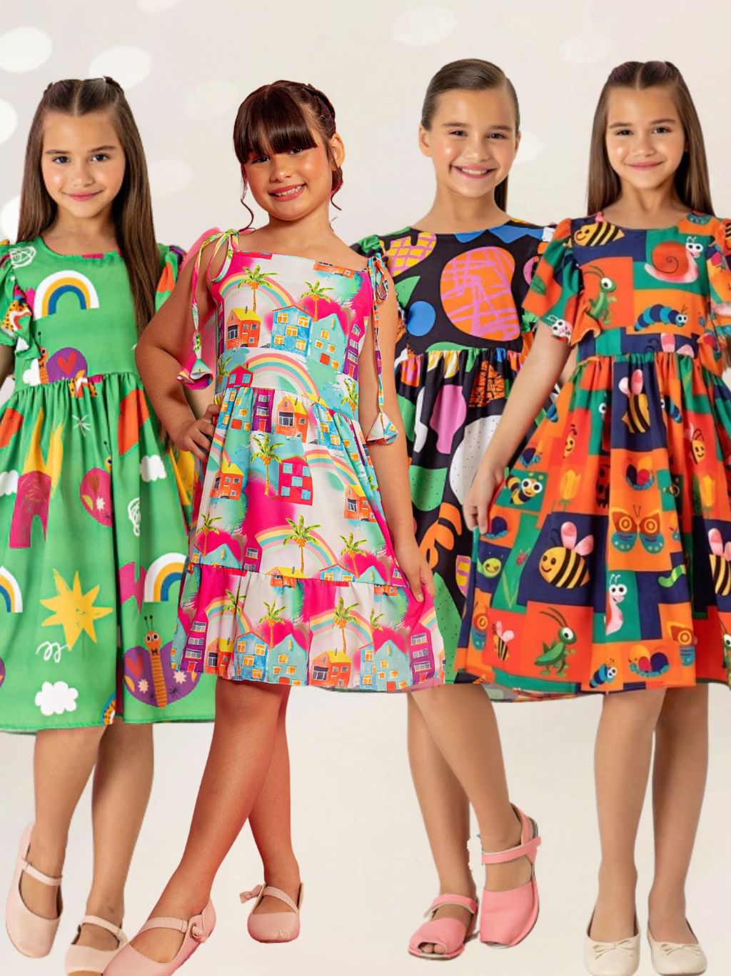 Vestido Infantil Menina Soltinho Juvenil Festa Roupa Criança Feminino Estampado Babado Blogueirinha