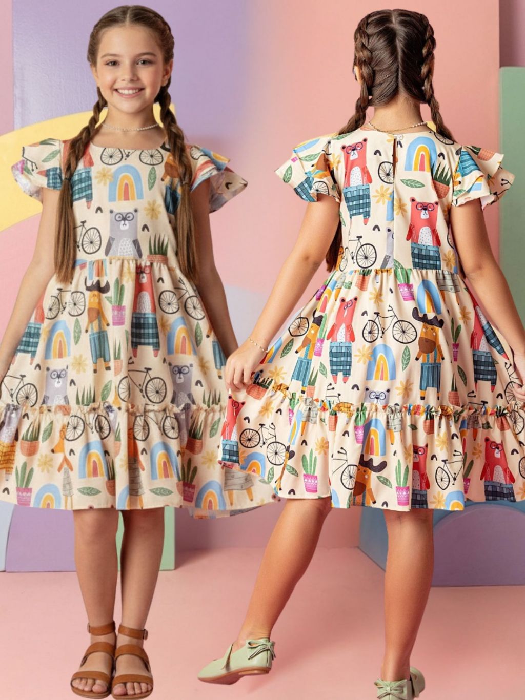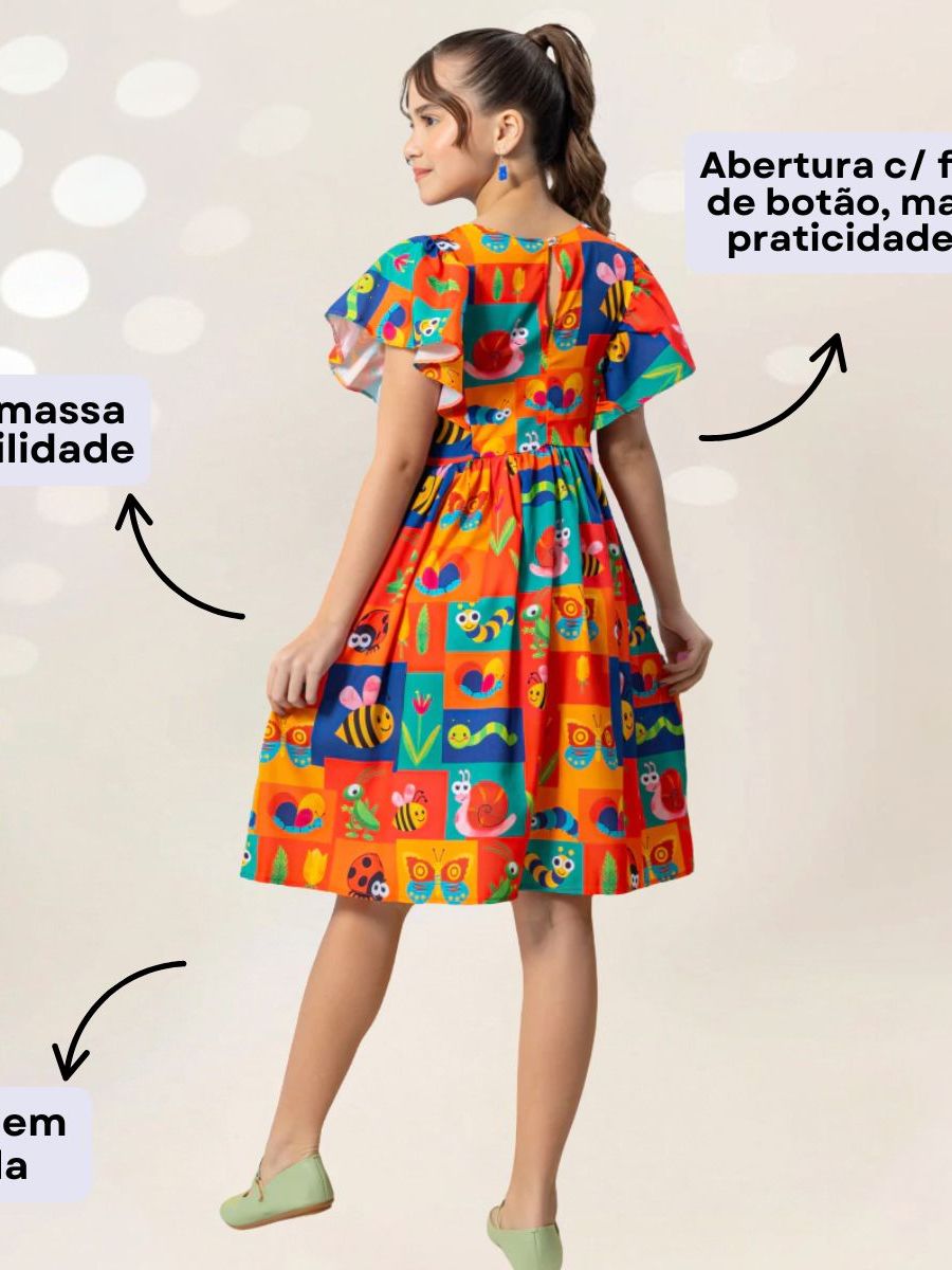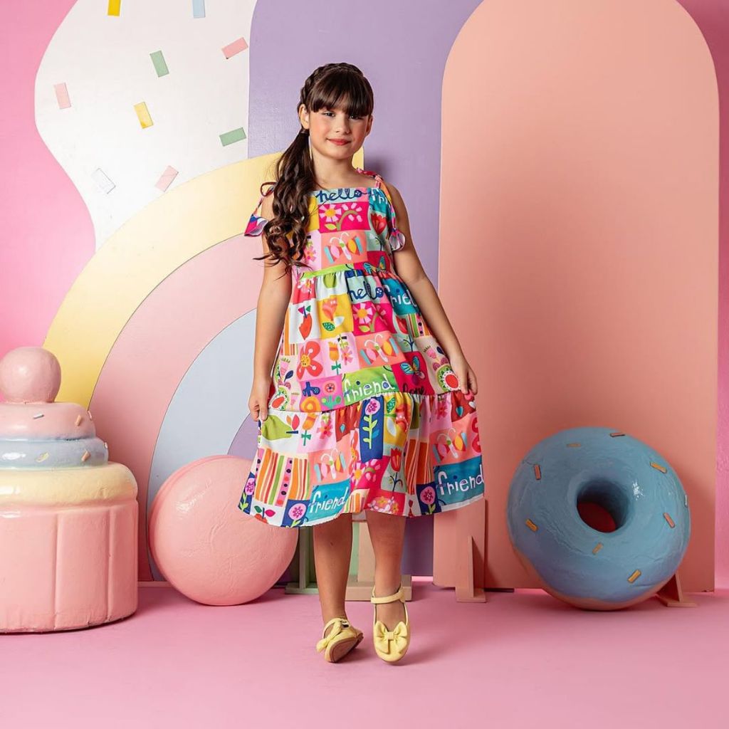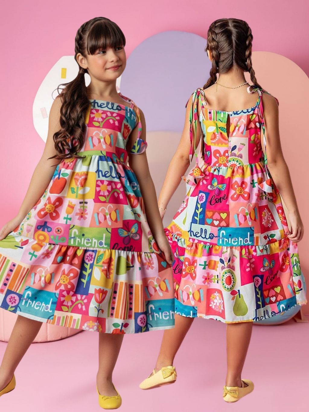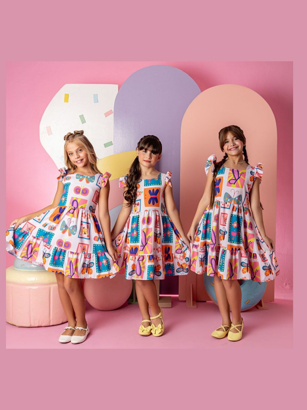 Vestido Infantil Menina Soltinho Juvenil Festa Roupa Criança Feminino Estampado Babado Blogueirinha