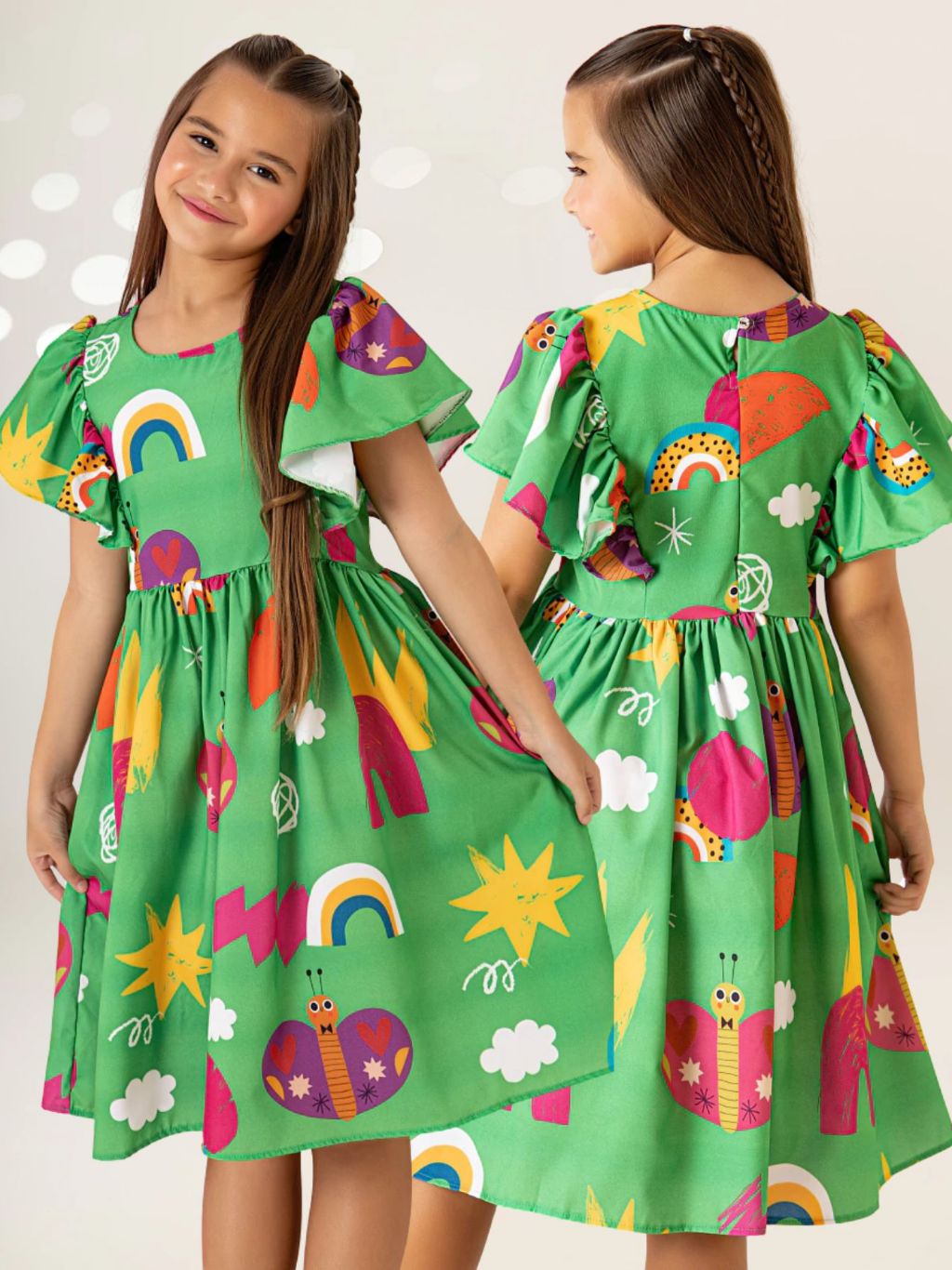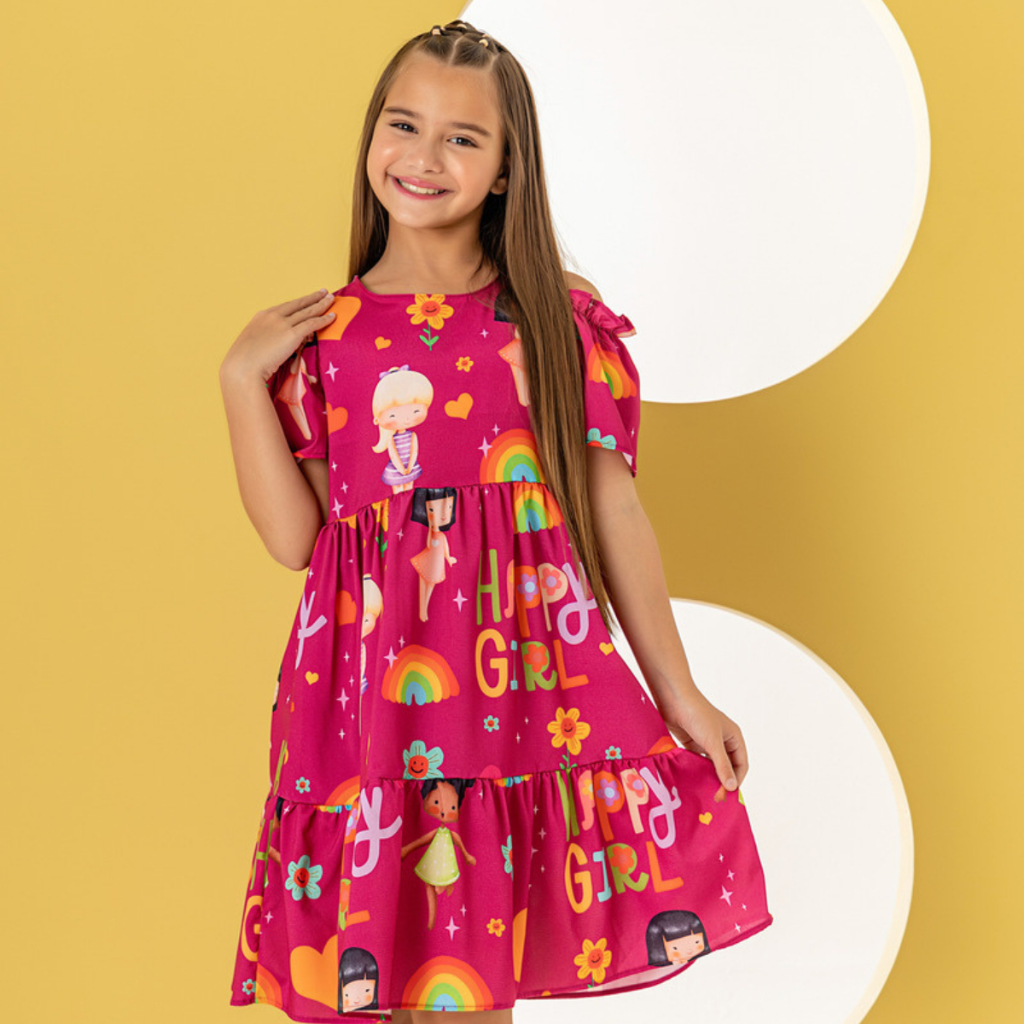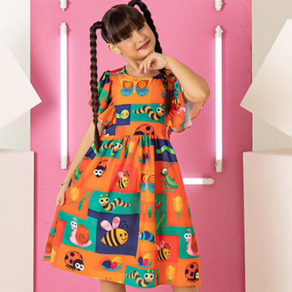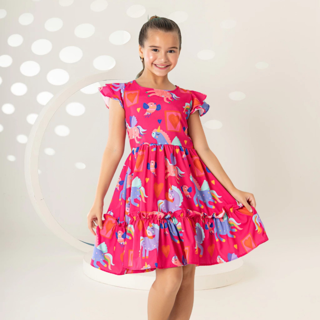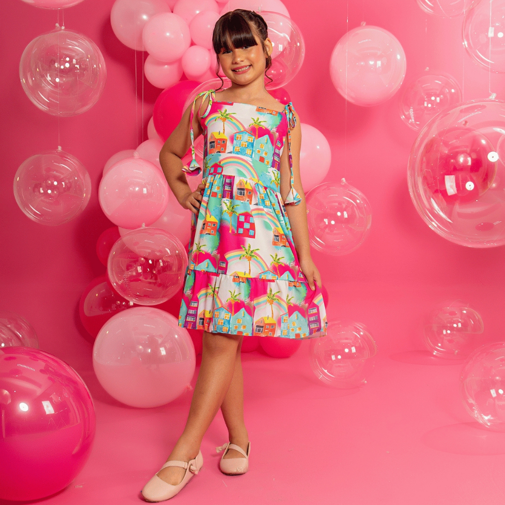 Vestido Infantil Menina Soltinho Juvenil Festa Roupa Criança Feminino Estampado Babado Blogueirinha