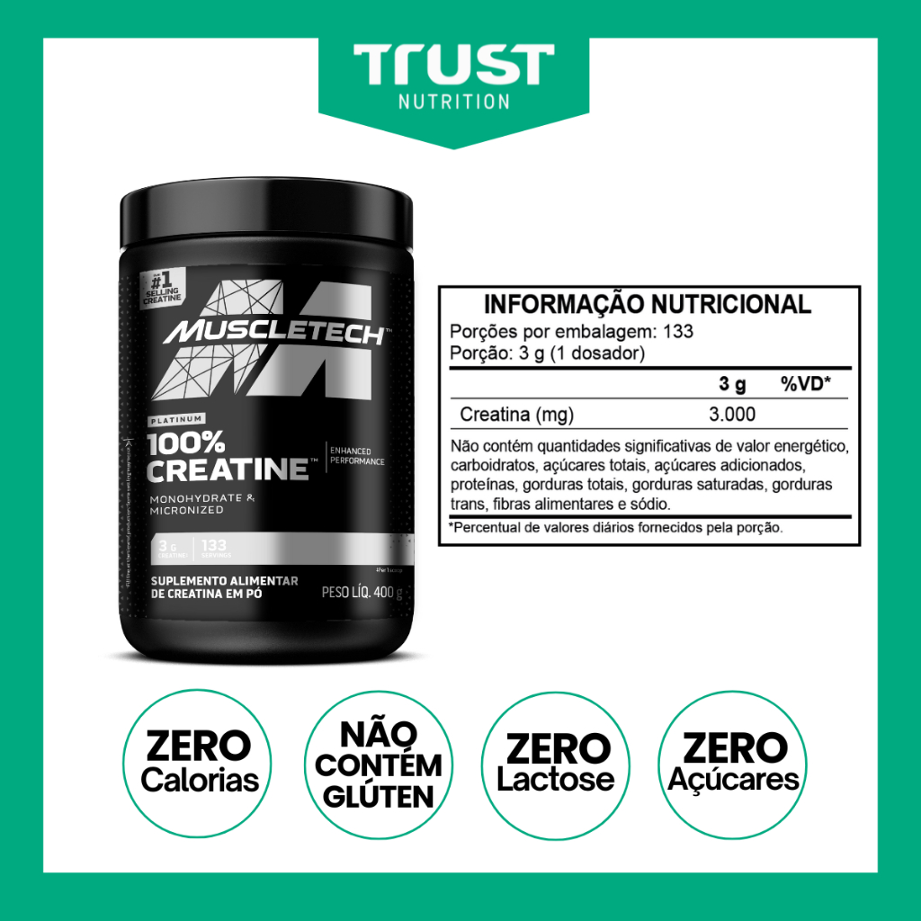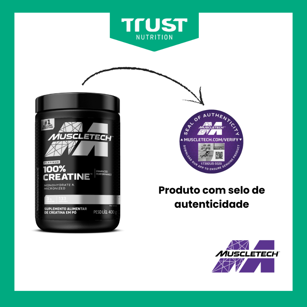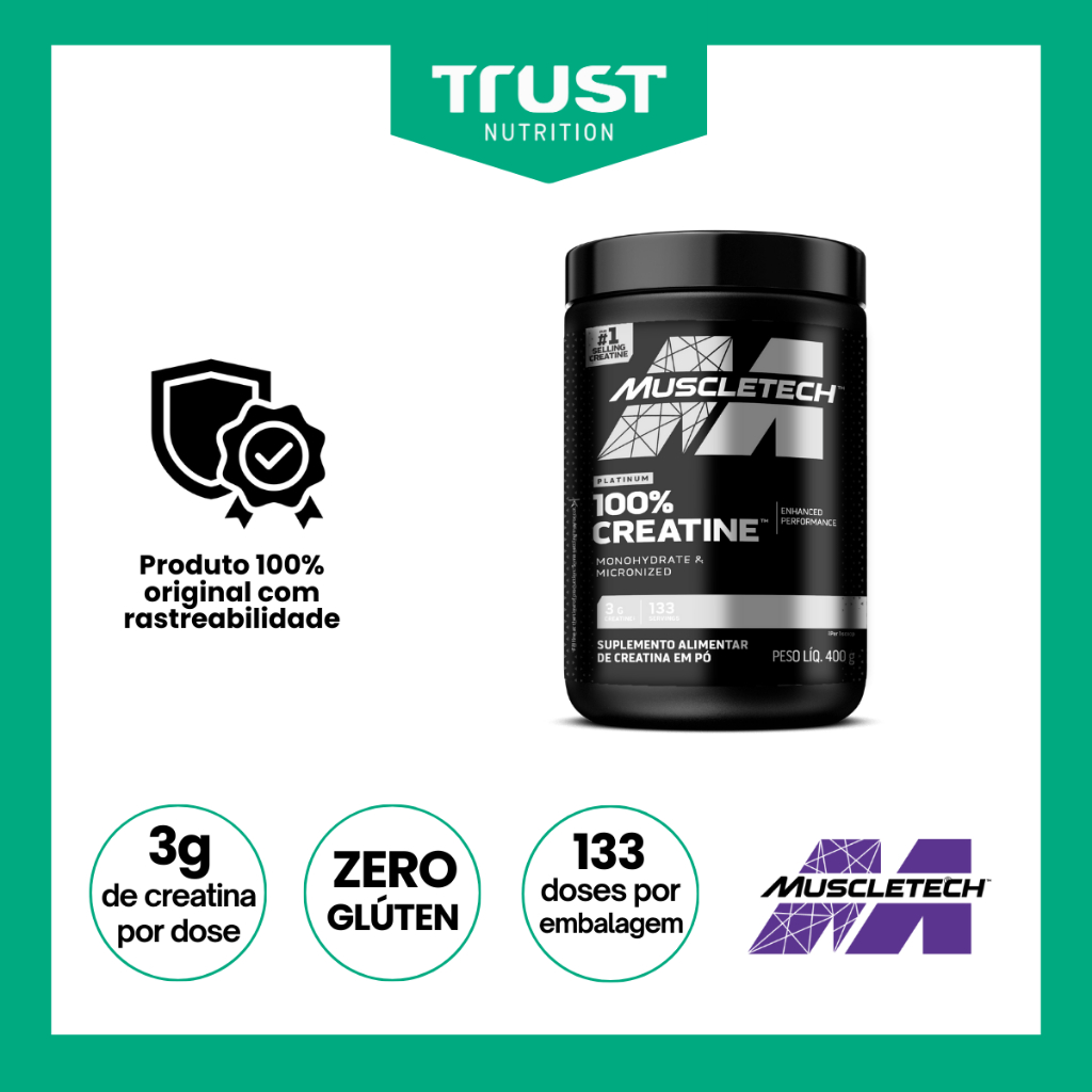 Creatina Platinum 400g 100% Pura MuscleTech Sem Sabor