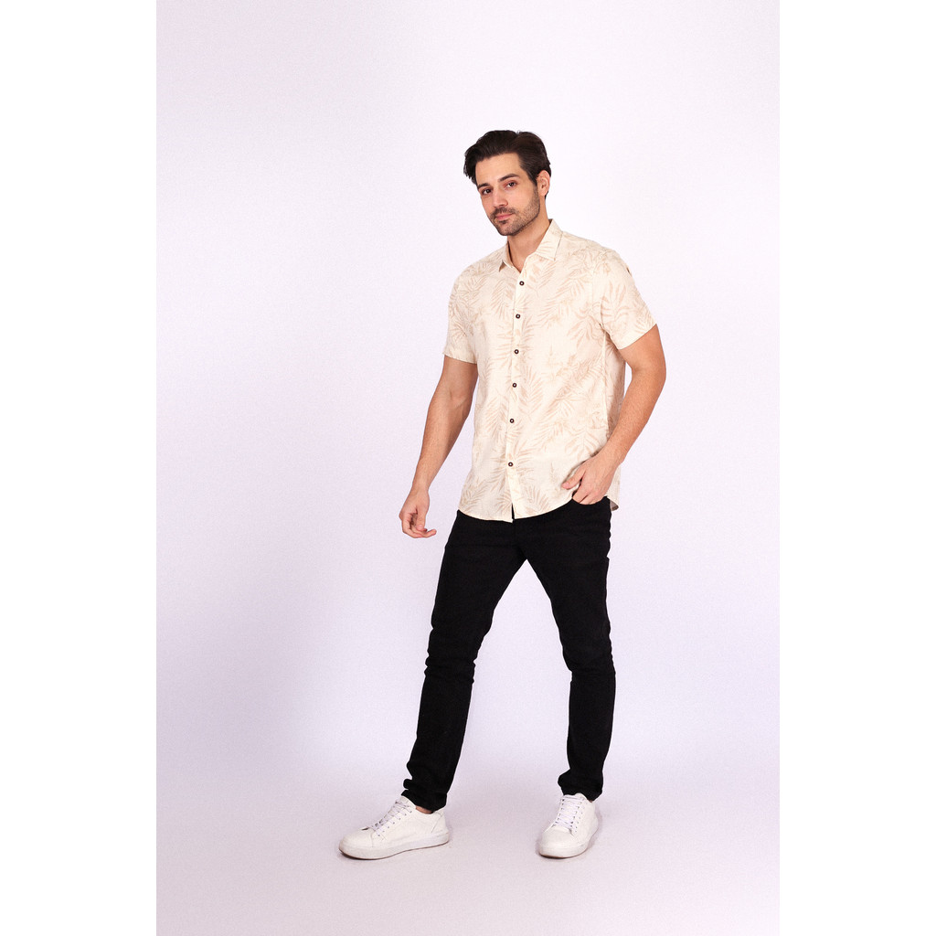 Camisa Manga Curta em Viscolinho Estampa Folhagens - Verão