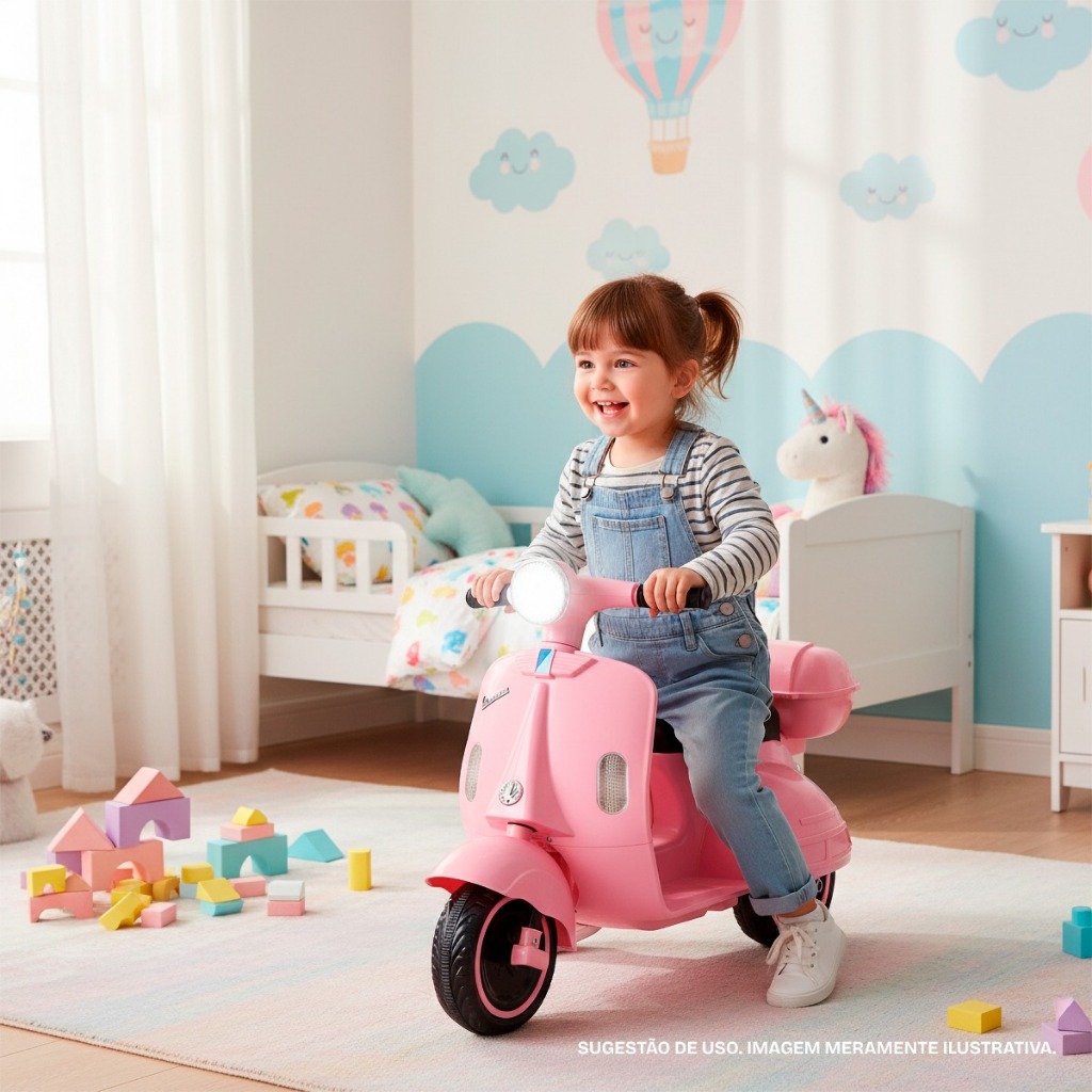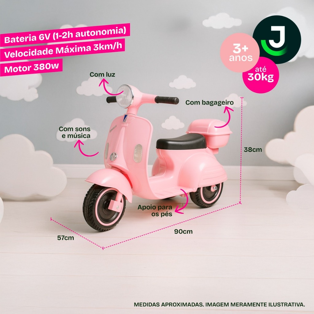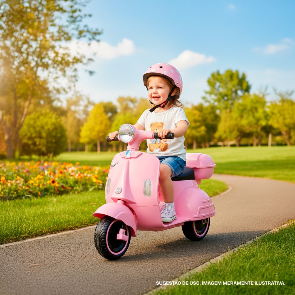 Mini Moto Motinha Elétrica Infantil Scooter Vespa Retro Rosa 180W Rosa