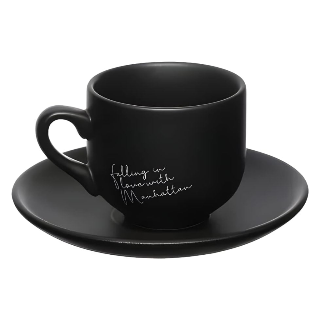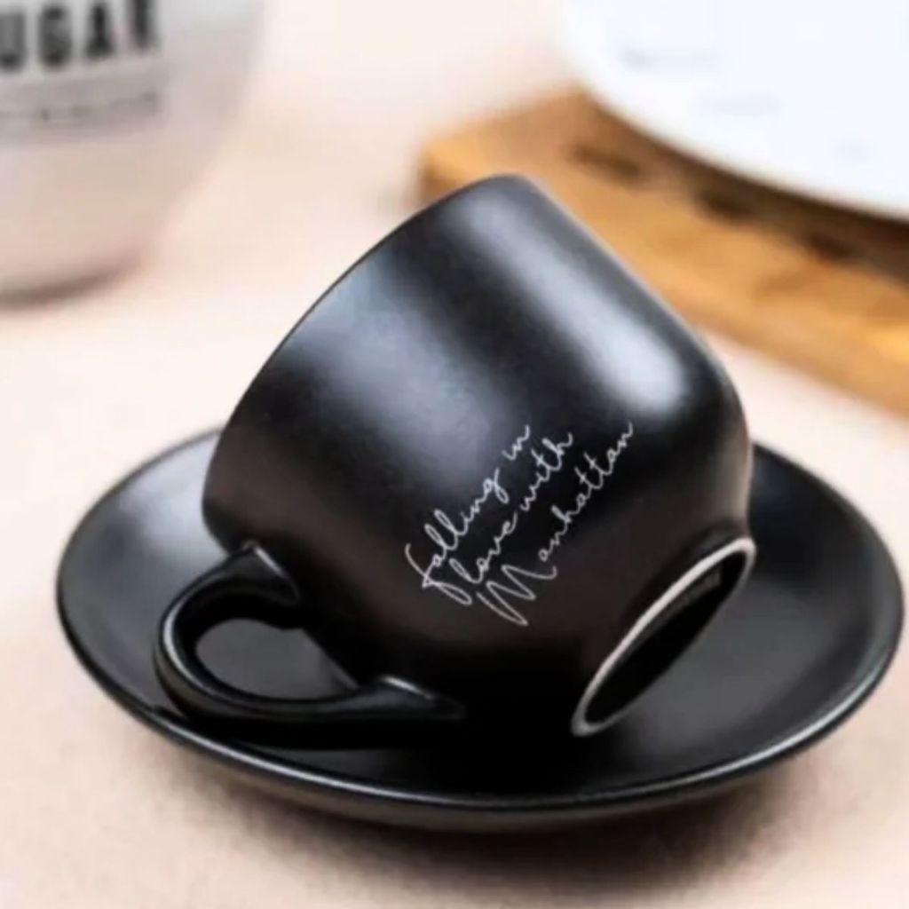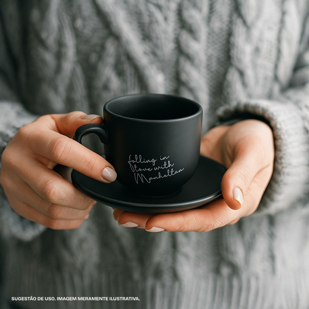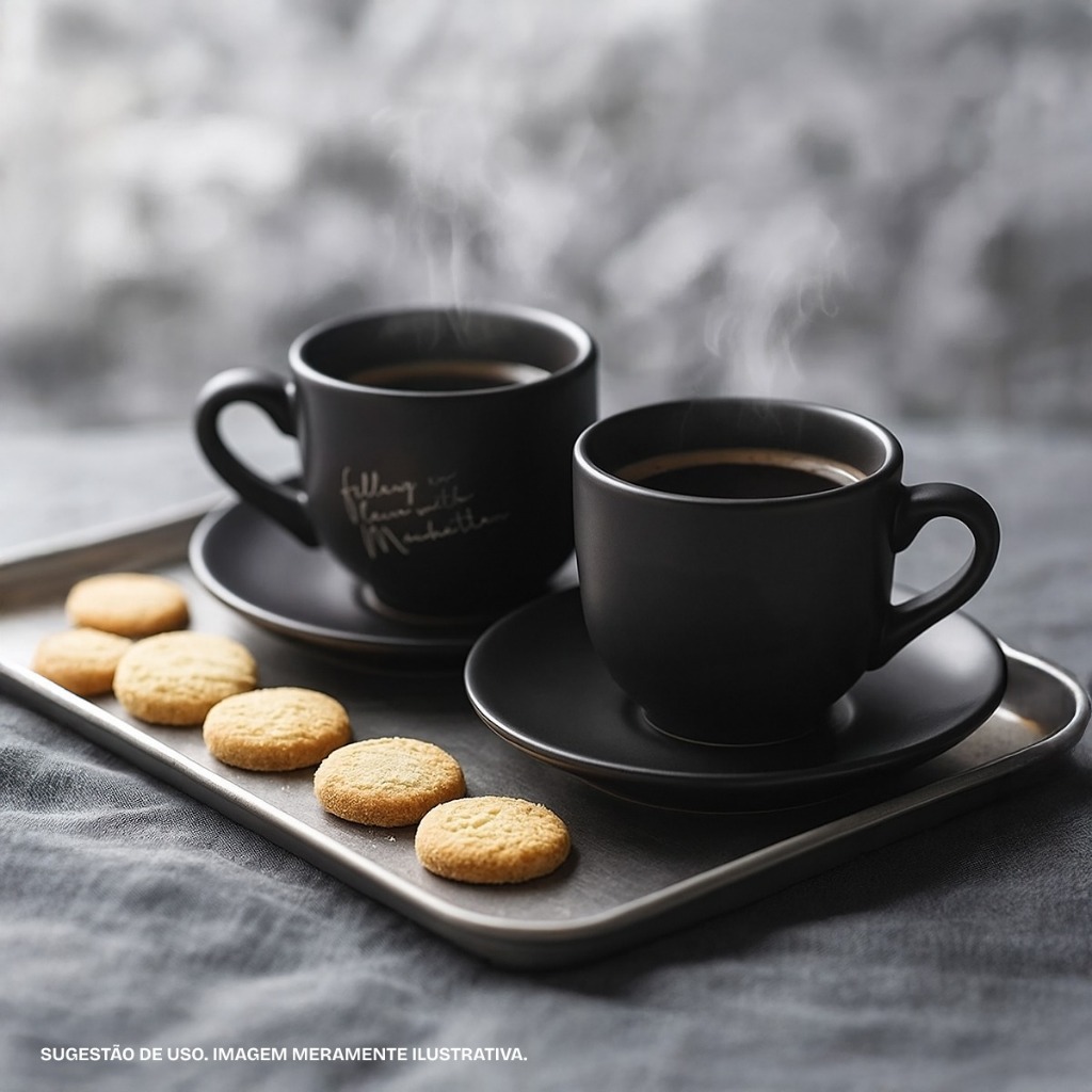 Jogo 6 Xicaras Café Chá Porcelana C/ Pires Manhattan 90ml Preto Fosco