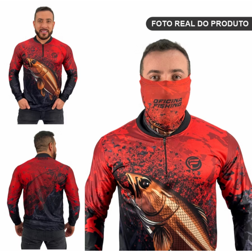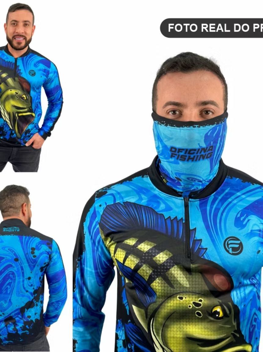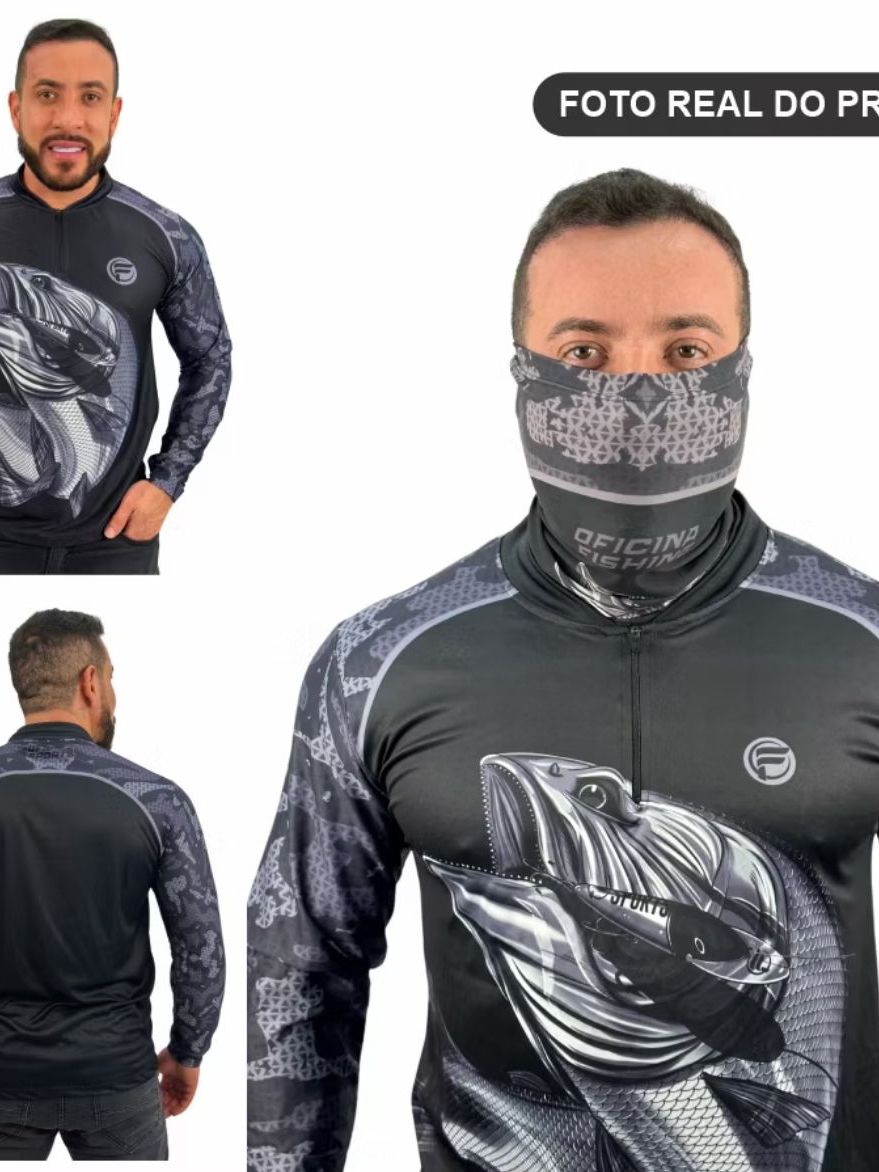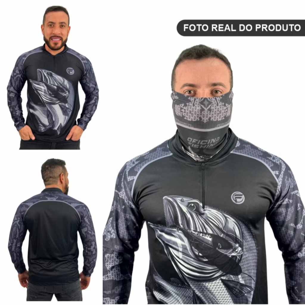 Kit Camisa Camiseta De Pesca + Bandana C/ Proteção Térmica Solar Uv50 Dryfit Envio Imediato