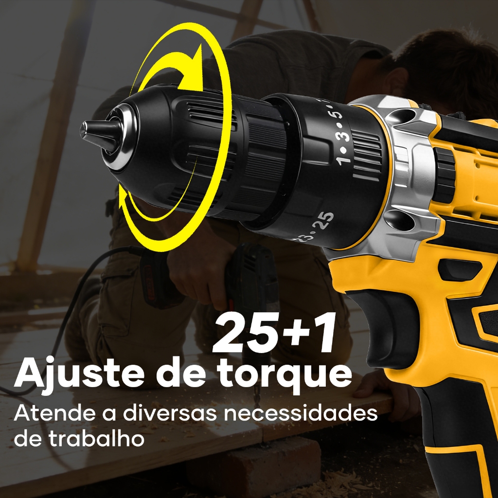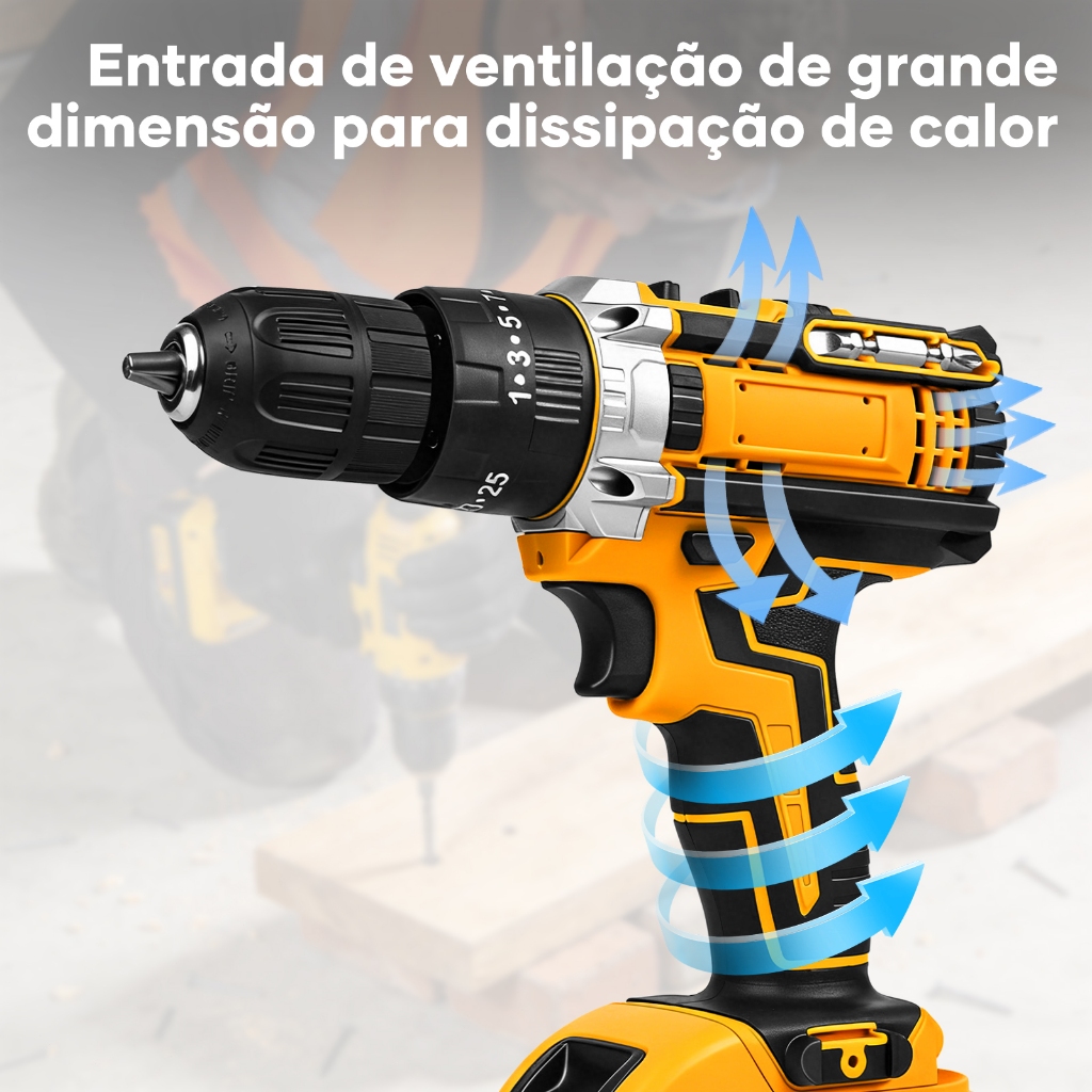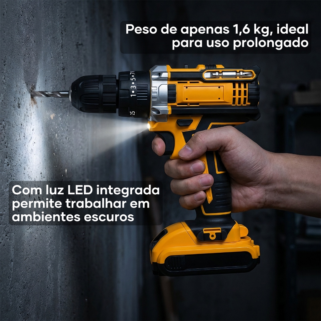 Kit Parafusadeira Furadeira Sem Fio Impacto com 2 Baterias 21V 45NM Profissional, Maleta + Brocas/Bits