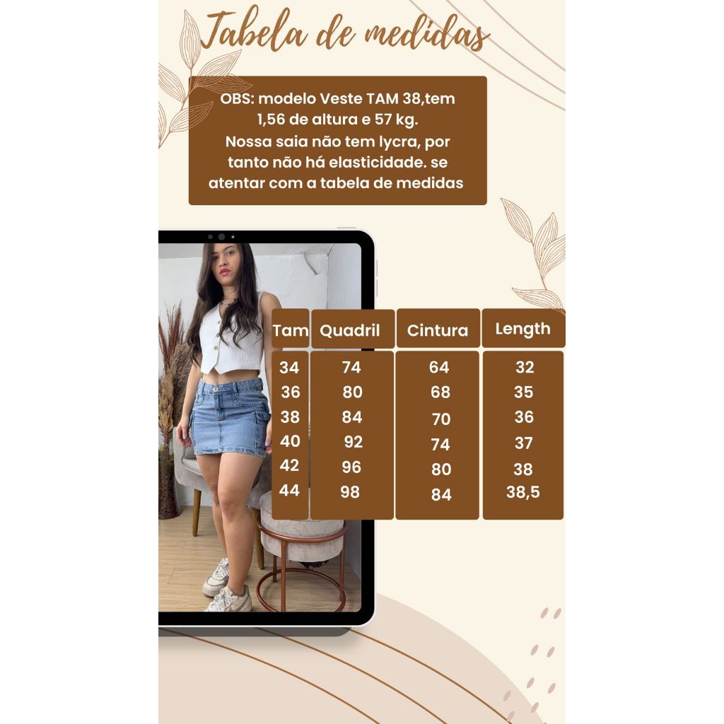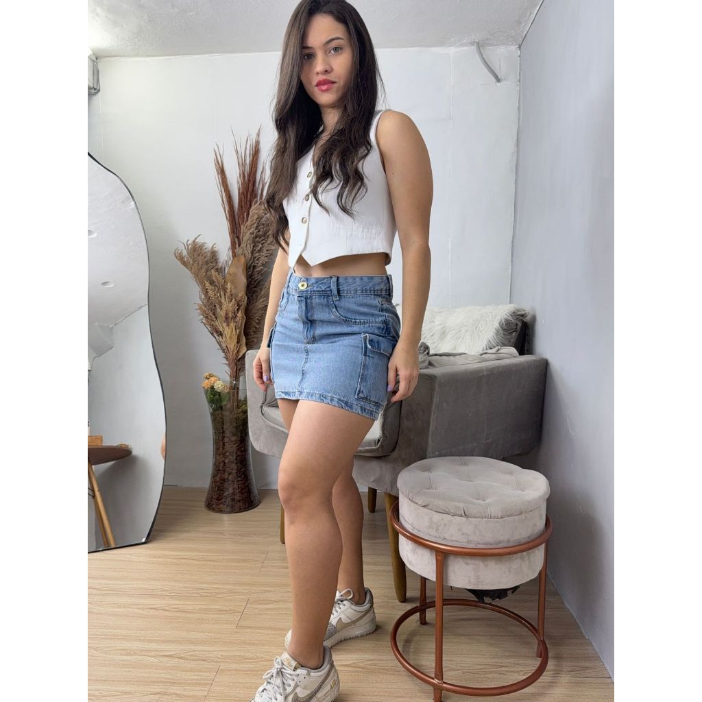 SAIA CARGO FEMININA JEANS CINTURA ALTA 100 % COM BOLSOS LATERIAS LISA VERÃO