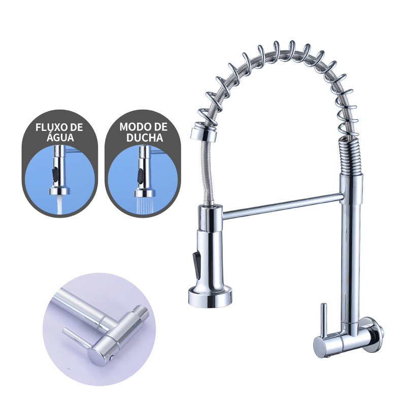 Torneira Gourmet Da Cozinha Única Água fria 304 Aço inoxidável Instalação Na Parede Monocomando Prata Brilhante