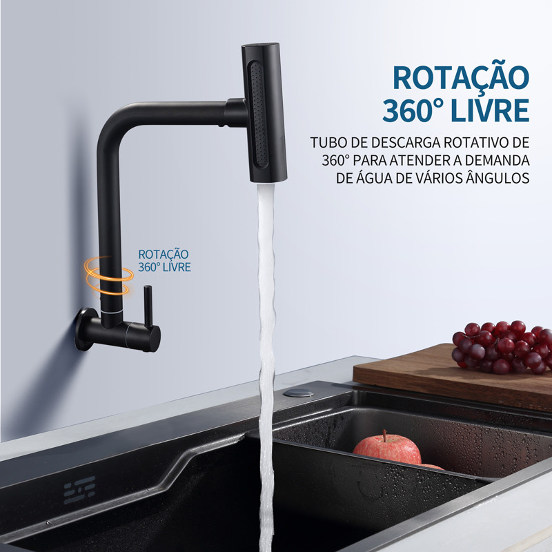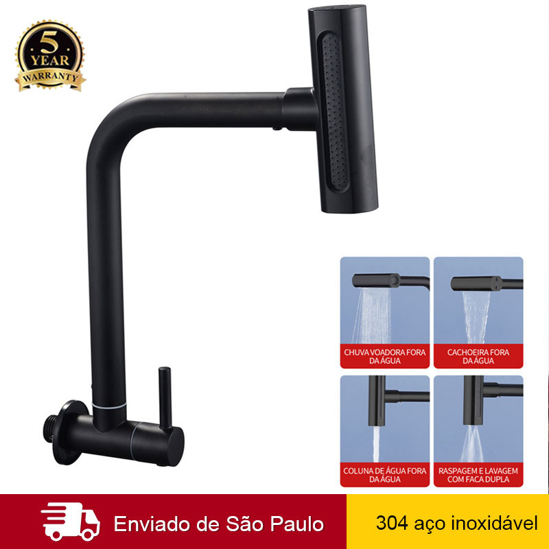 Torneira De Cozinha Água 4 Jatos montada na Parede Torneira Gourmet Aço Inox 304 Com Spray