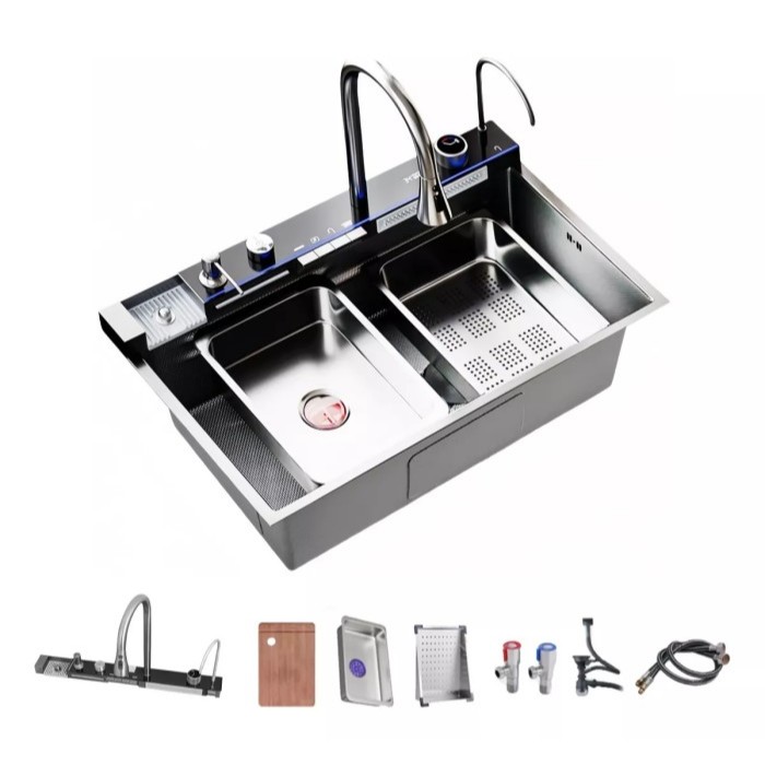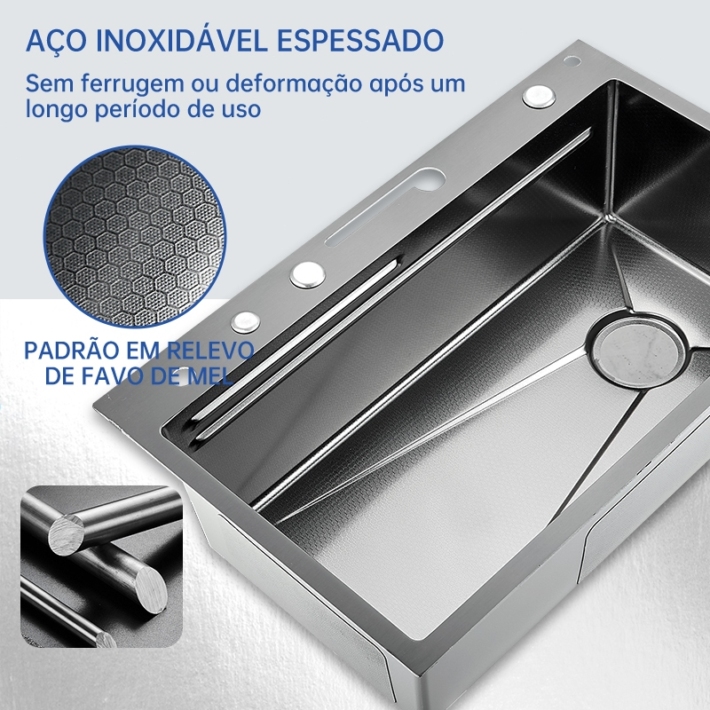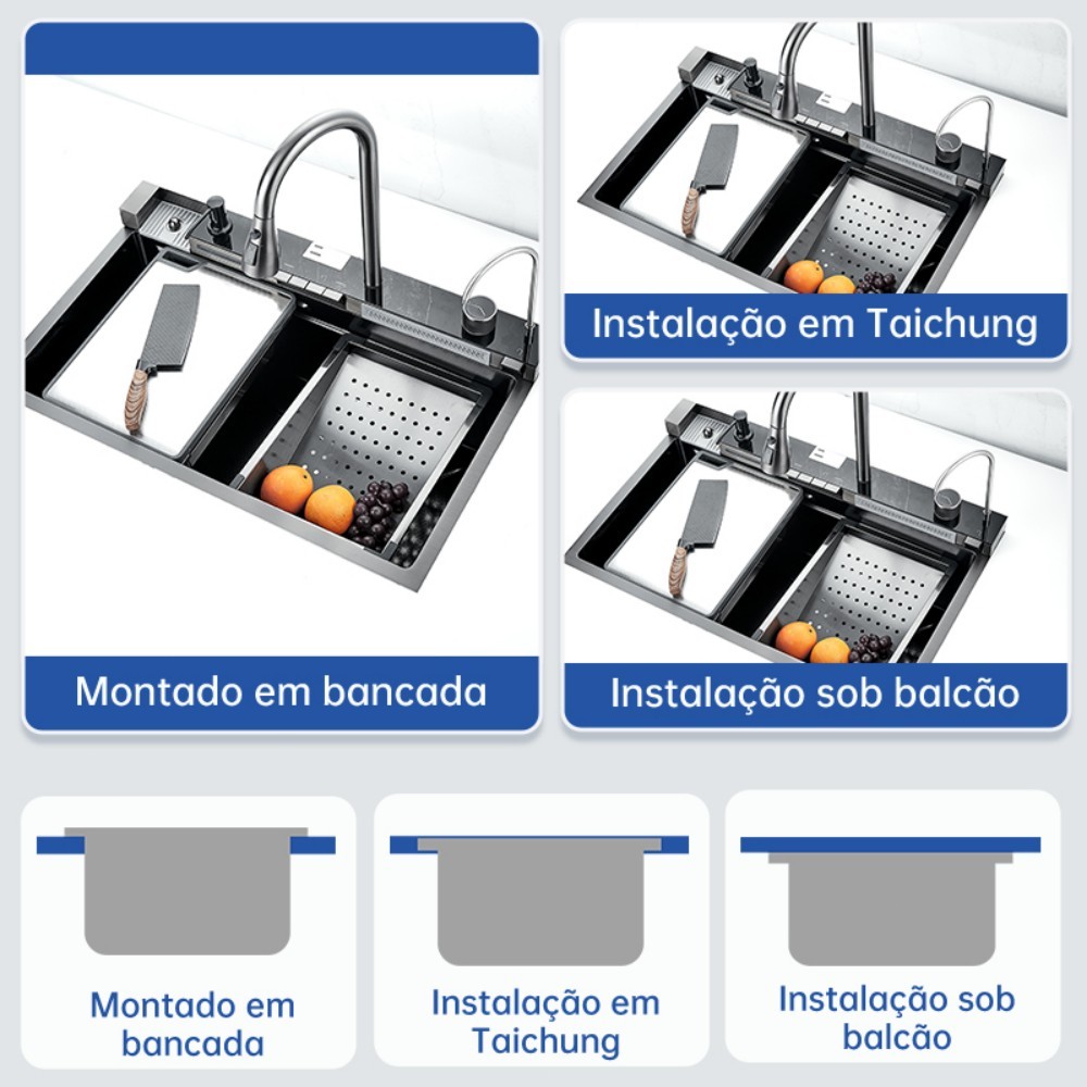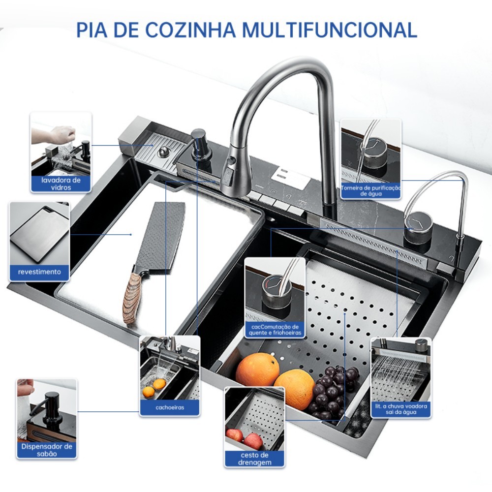 Cuba Cascata Pia Com Torneira Lavador De Copos Completa Acessórios Aço Inox 304 Cozinha Gourmet Premium