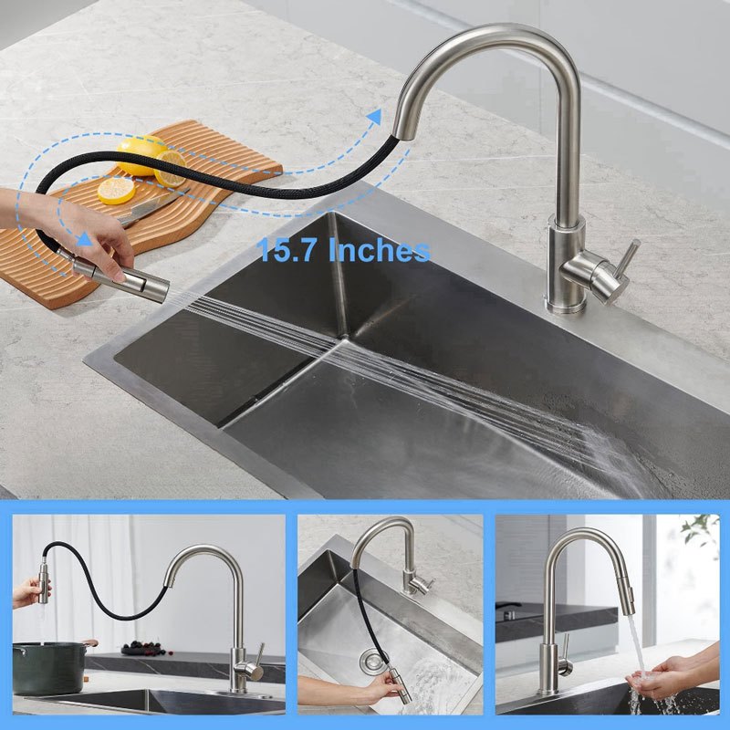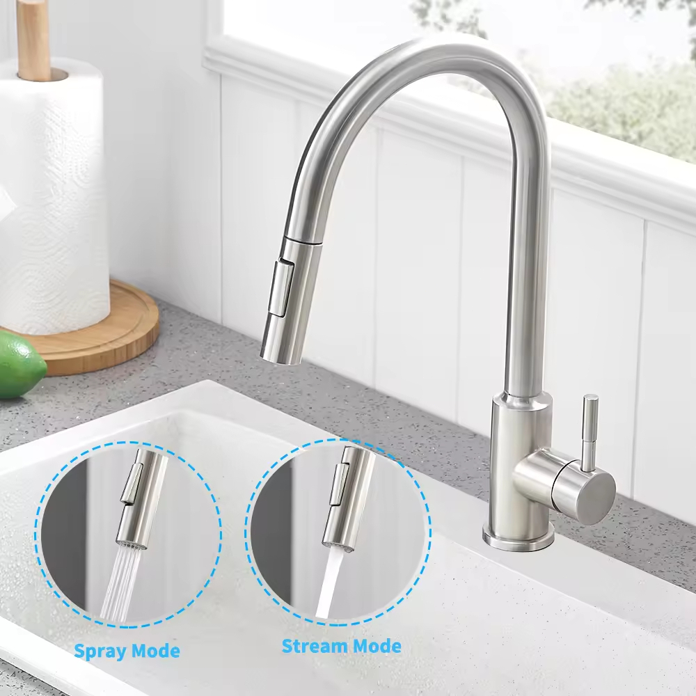 Torneira Cozinha Gourmet Bancada Misturador 2 modos Aço Inox 304 Cor Prata Escovado