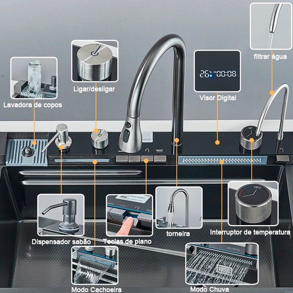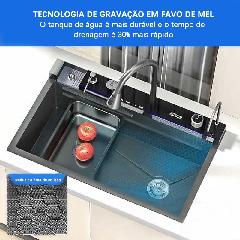 Kit Cuba Gourmet Aço Inox 304 com acessórios pia de cozinha 75x46cm Pia Inteligente Premium Completa Moderna