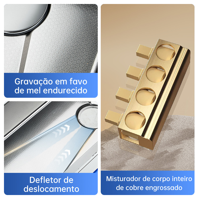 Cuba Para Pia Cozinha Gourmet Com Torneira Flexível 360 graus giratória 75 x 46 CM Inox 304 ouro