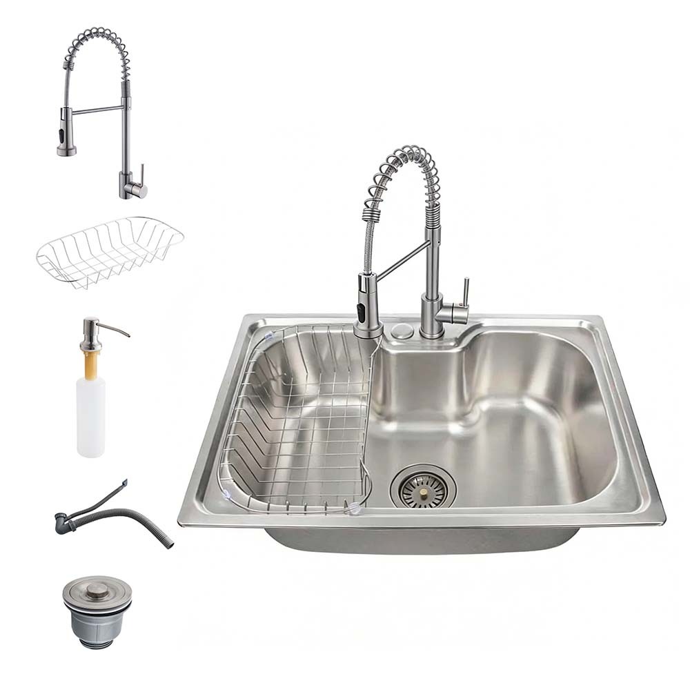 Cuba Pia Cozinha Gourmet Aço Inox 304 Luxo Prata Escovado 60x42cm + Torneiras gourmet Barra duplo