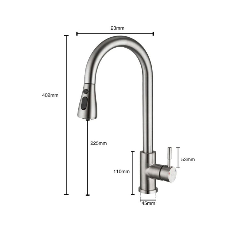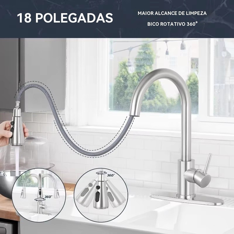 Torneira Para Cozinha Gourmet Misturador Monocomando Em Aço Inox 304 prata Escovad
