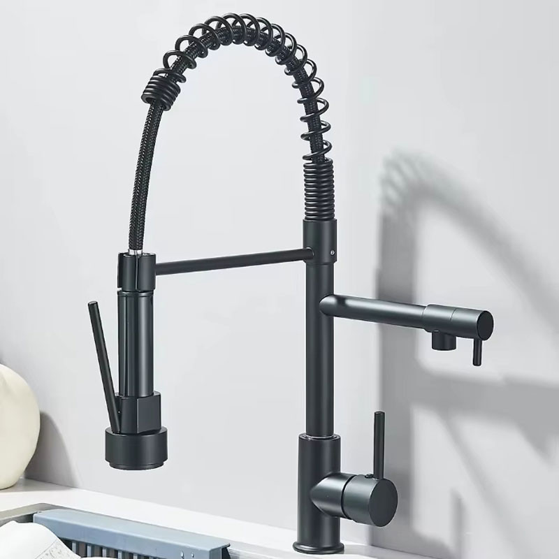 Torneira Cozinha Gourmet de Bancada Monocomando Com Spray Extensor, preto Aço Inox 304 Torneira