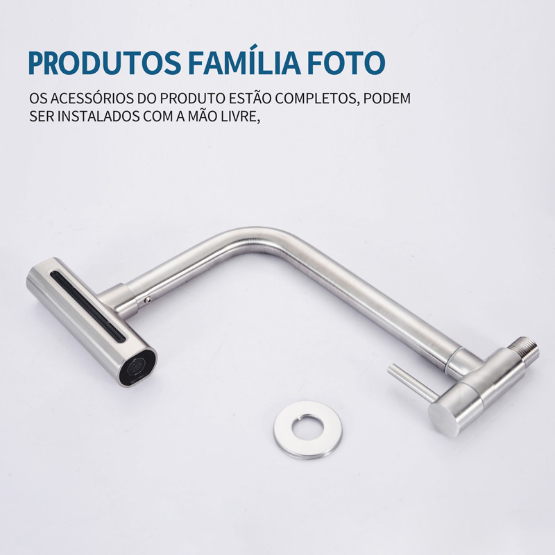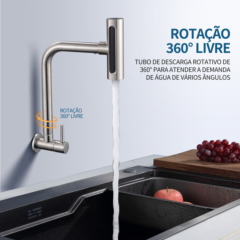 Torneira gourmet cozinha Inox Parede montada na parede luxo prata/preto