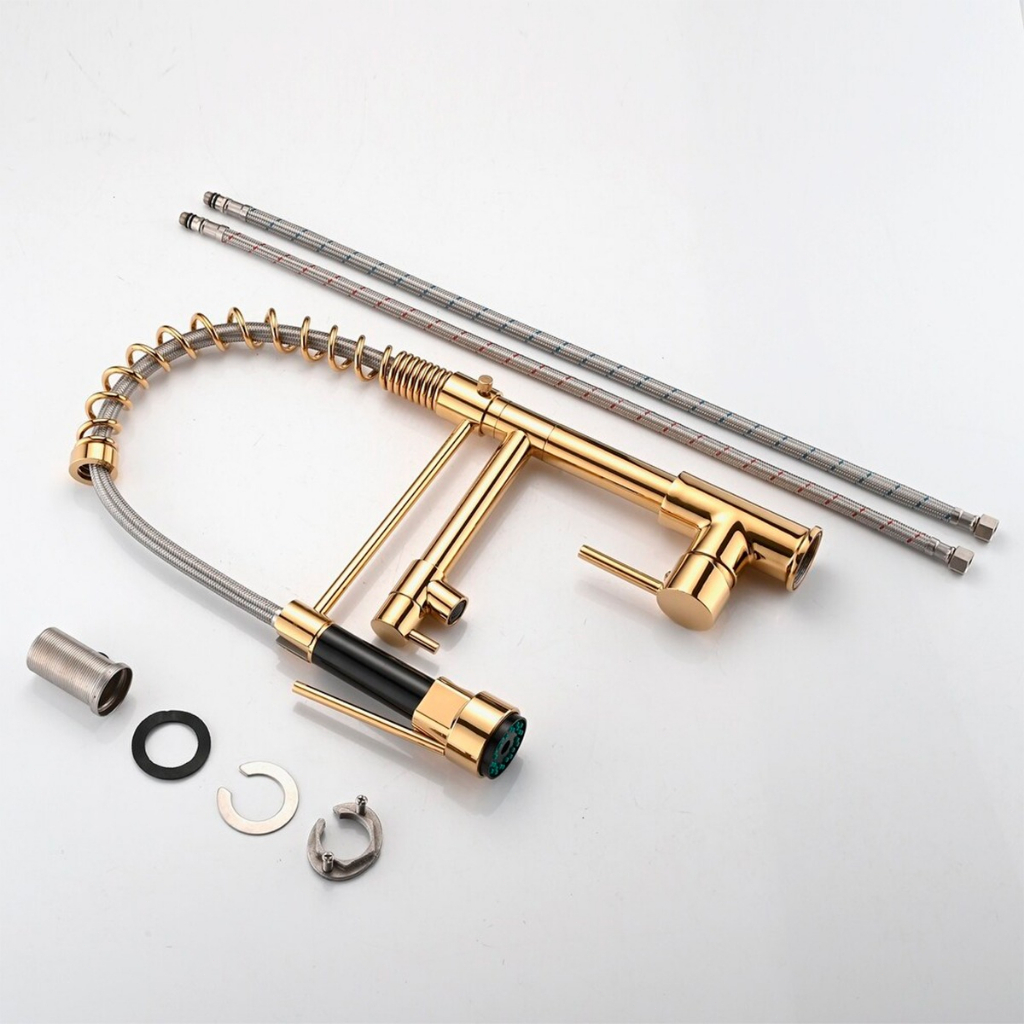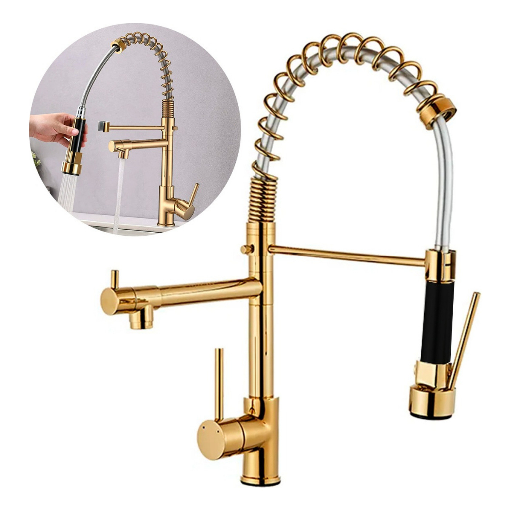 Torneira Monocomando Luxo Cozinha 2 Saídas Flexível Gourmet Aço Inox 304 Cor Dourada Tubo de água flexível para ajustar