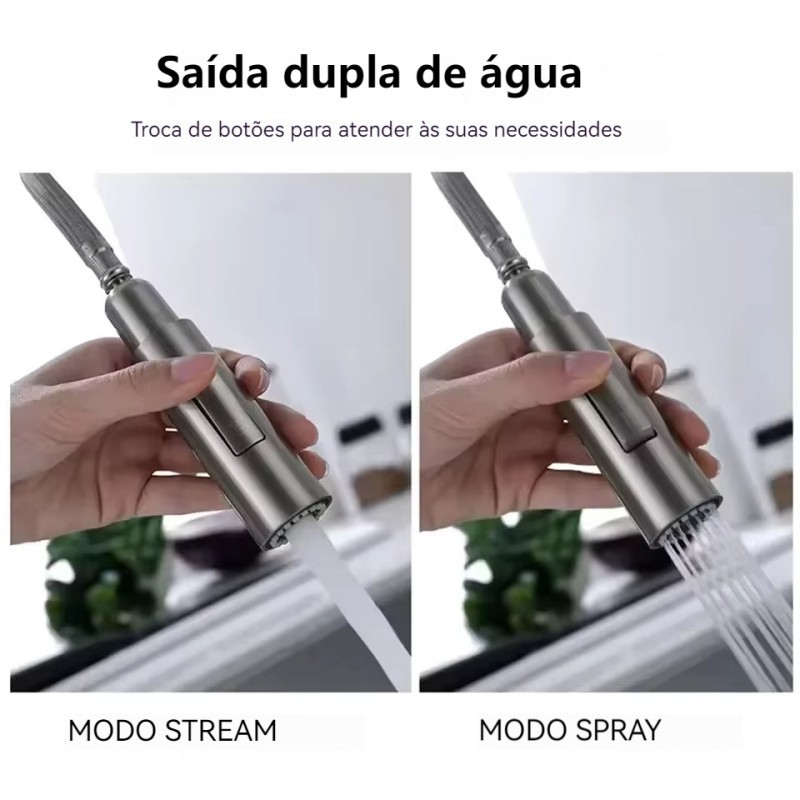 Torneira Gourmet de Cozinha Misturador Monocomando Com Spray Extensor, Duas funções