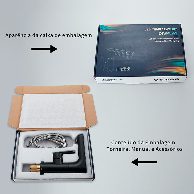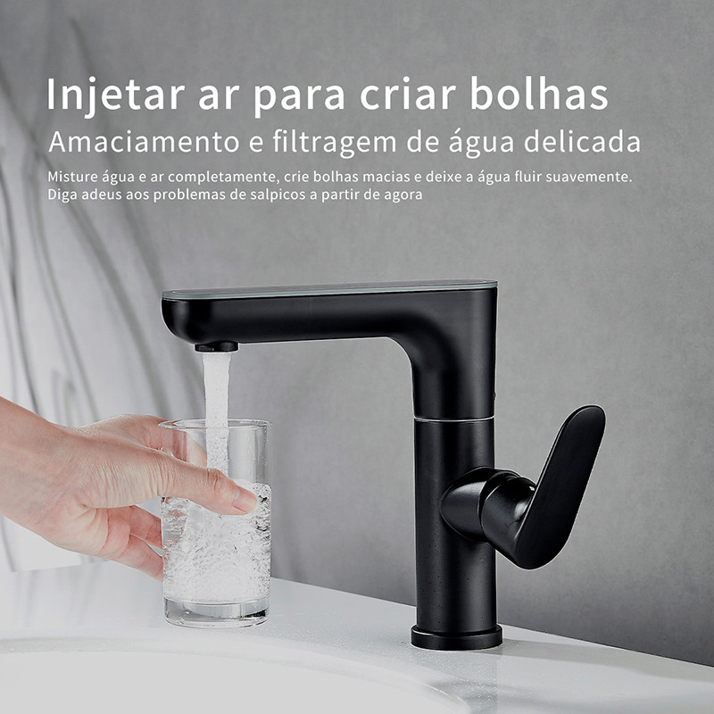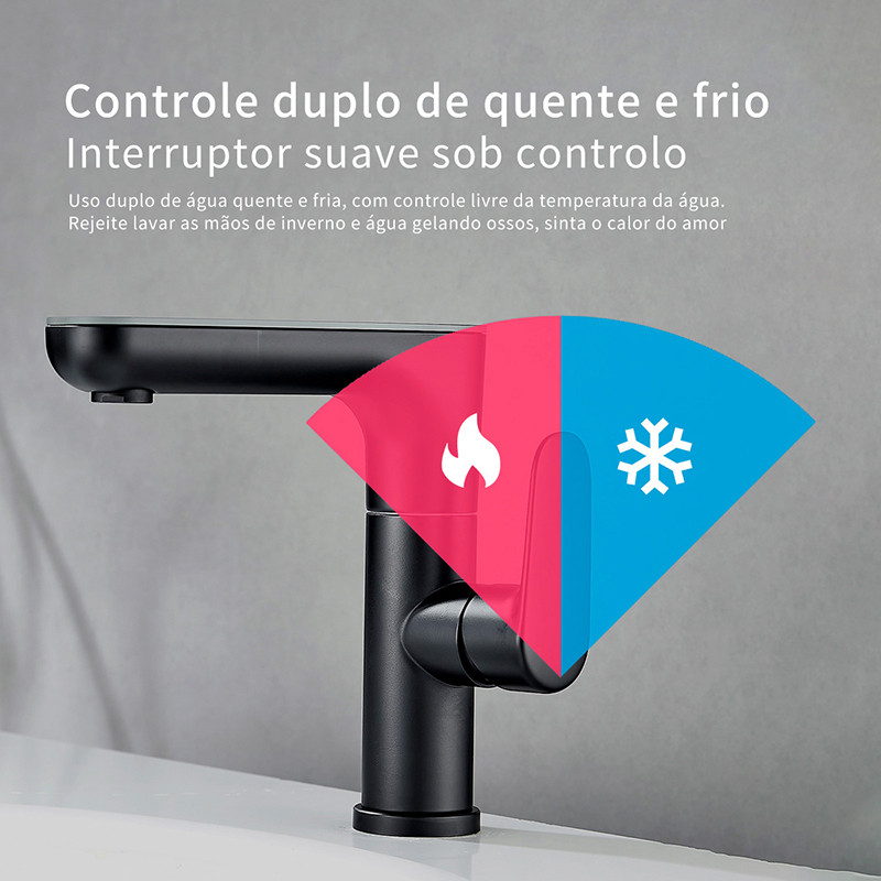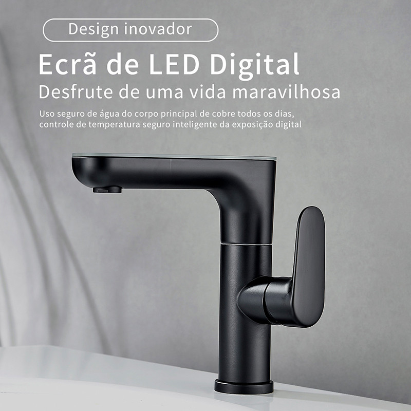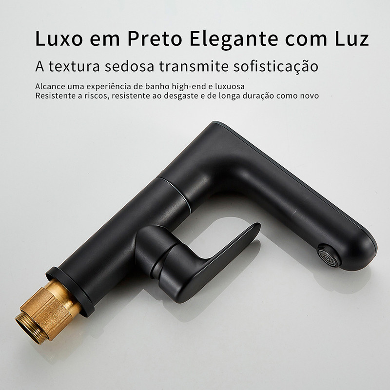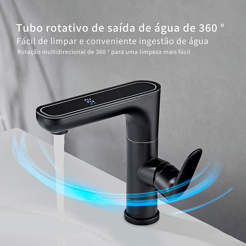Torneira de Lavatório com Display de Temperatura e Função LED, Bancada Misturadora Monocomando Rotação de 360