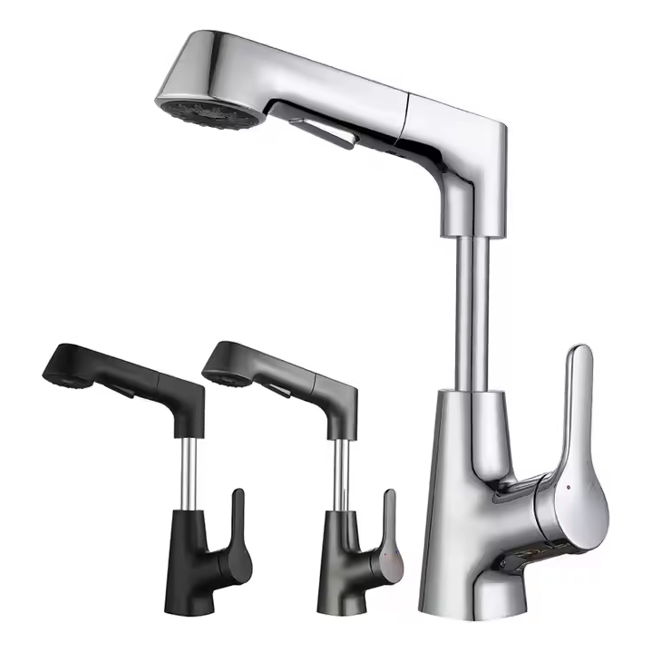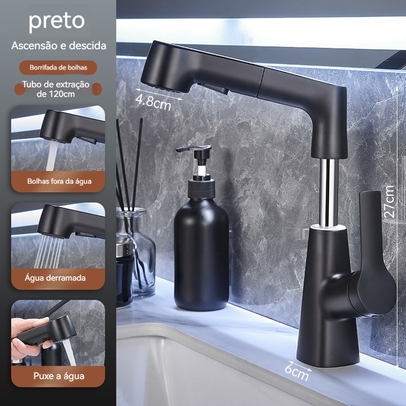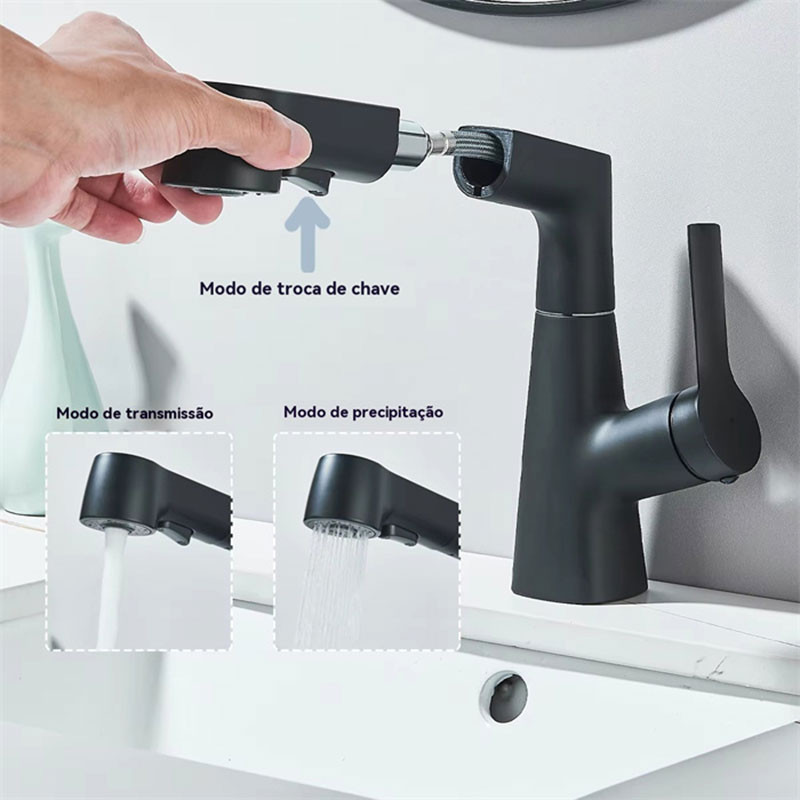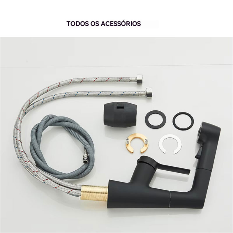 Torneira De Cozinha E Banheiro Aço Inox 304 Monocomando Flexível 2 Modos Misturador Saída de Água Quente e Fria