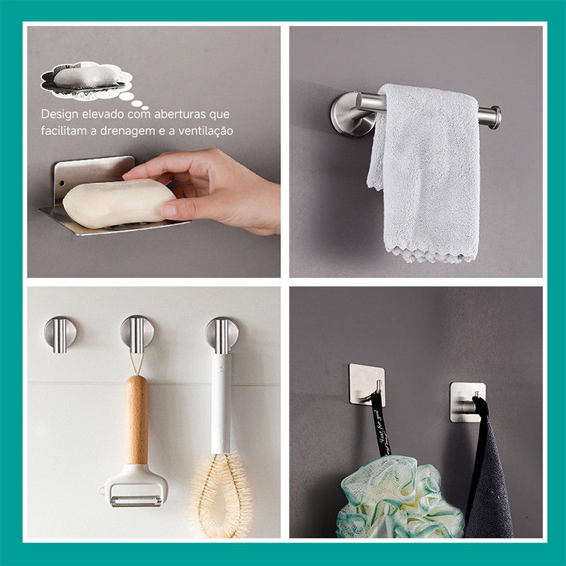 Kit De Acessórios Inox 304 Banheiro Toalheiros Papeleira Kit Completo Banheiro Moderno