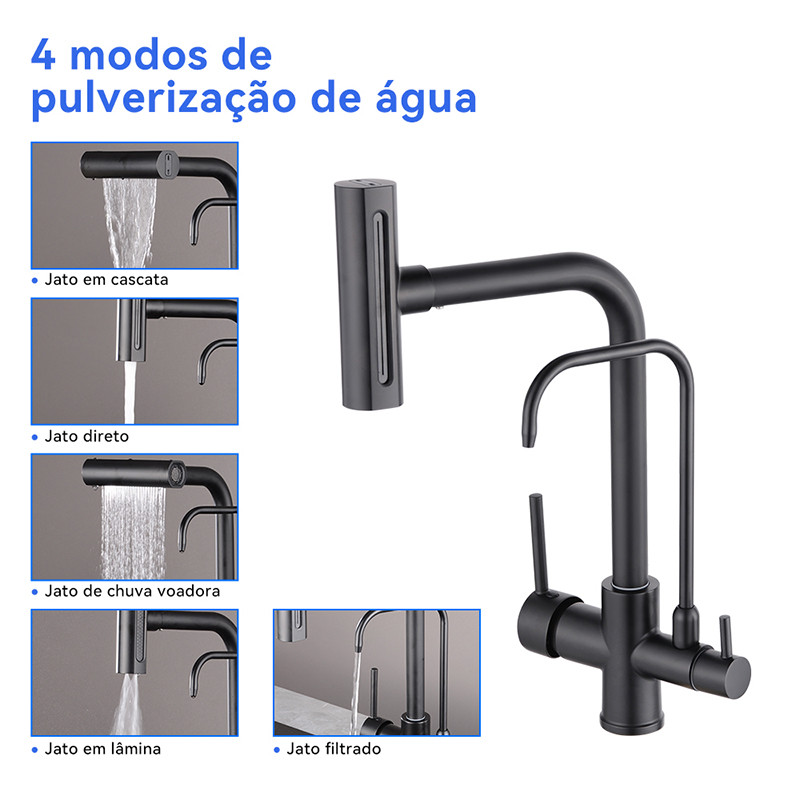 Torneira Cozinha Monocomando em Aço Inox 304 com Filtro