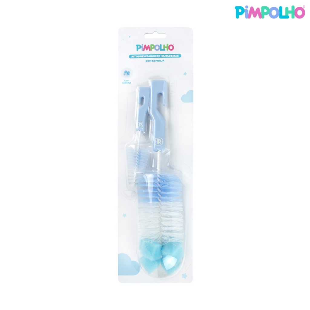Kit Higienizador Mamadeiras Pimpolho Com Esponja 2 Unid Azul