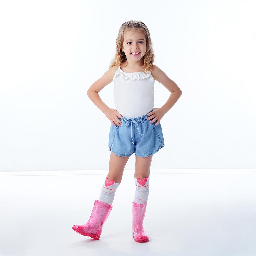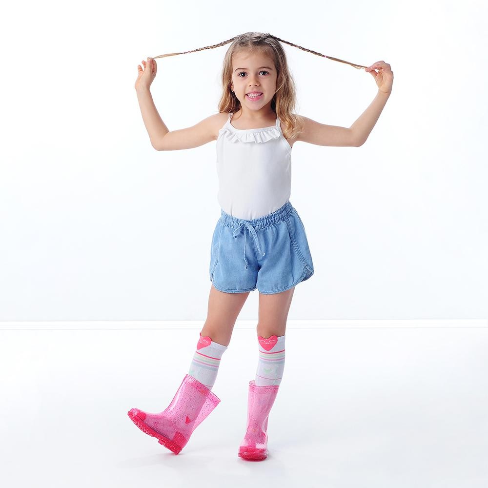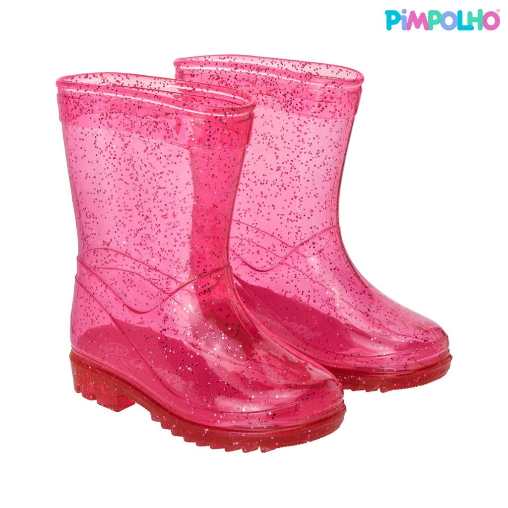 Galocha Infantil Transparente Glitter Rosa Feminina Pimpolho