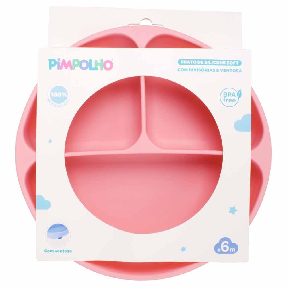 Prato De Silicone Com Divisória E Ventosa Soft Pimpolho Rosa