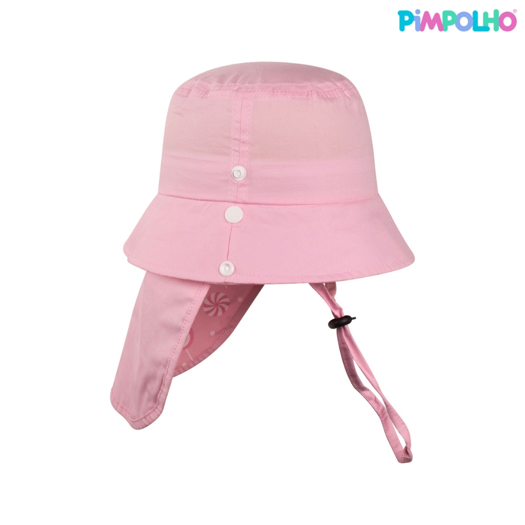 Chapéu Com Proteção de Pescoço UV50+ Bebê 6-24m Feminino Algodão Ajustável Praia Piscina Verão Pimpolho