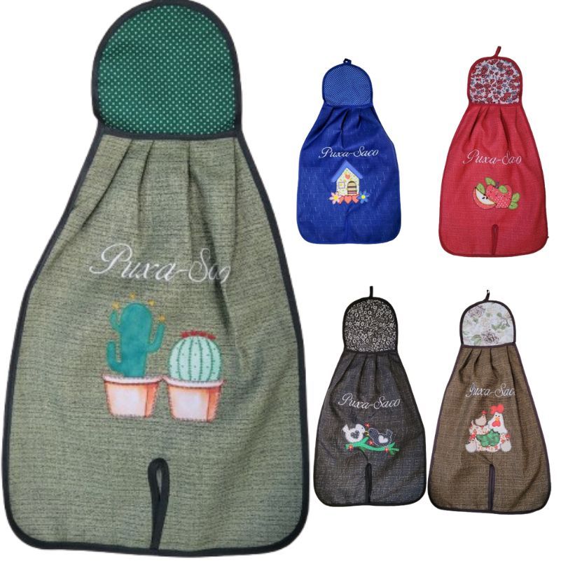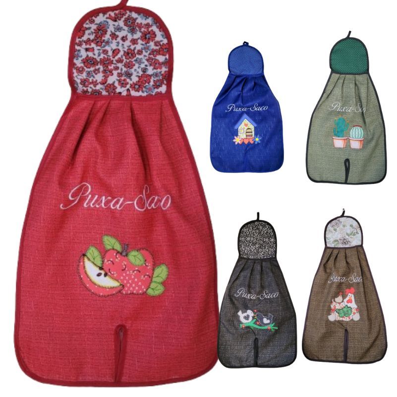 Kit 2 Puxa Saco GRANDE Estampas Variadas Bordado Aplic Cozinha Lavanderia - Envio Rápido