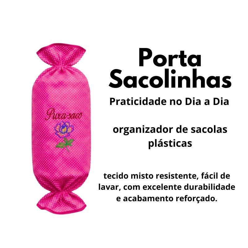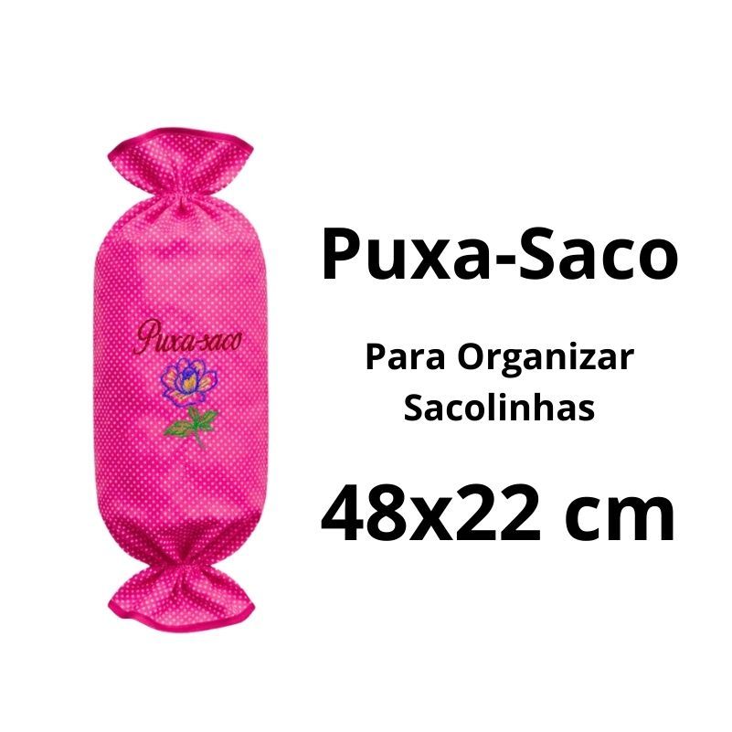 Puxa-Saco Poá Rosa com Bordado – Organizador de Sacolas para Cozinha, Lavanderia e Área de Serviço