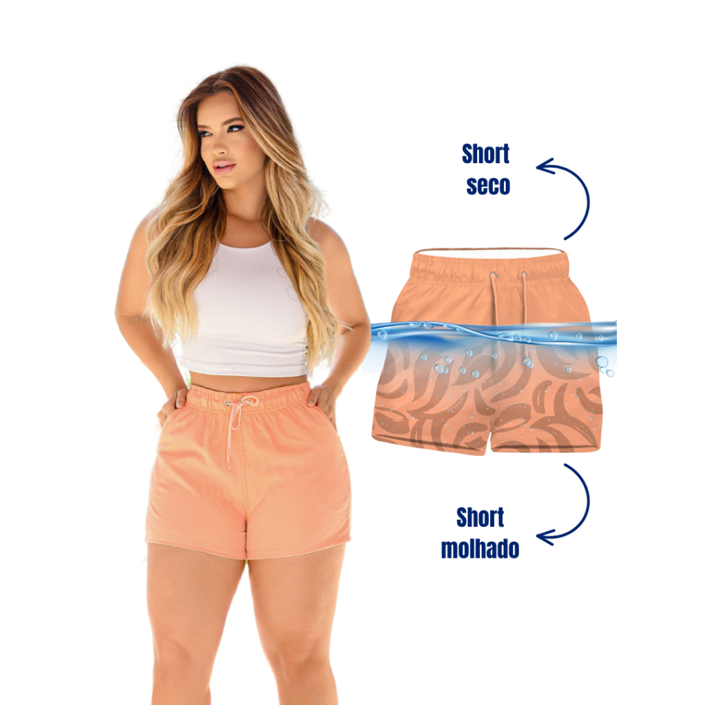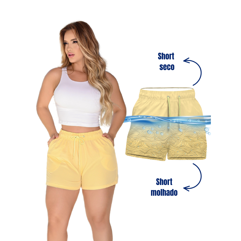 Short De Praia Feminino Estampa Mágica Aparece Ao Molhar Rápida Secagem Confortável Verão