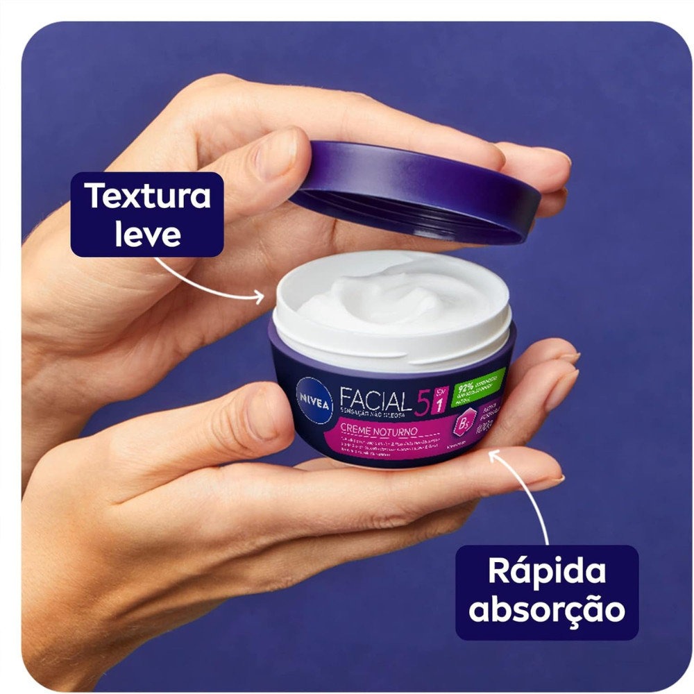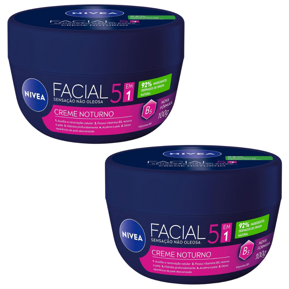 Creme Facial NIVEA 5 em 1 Noturno 100g – Renovação Celular com Vitamina B5 | Hidratação Profunda para a Noite