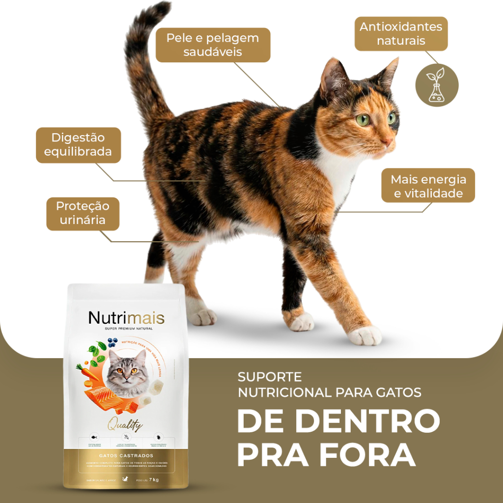 Ração Nutrimais Salmão 1.5kg Gatos Castrados Pele Sensível todas as raças e idades
