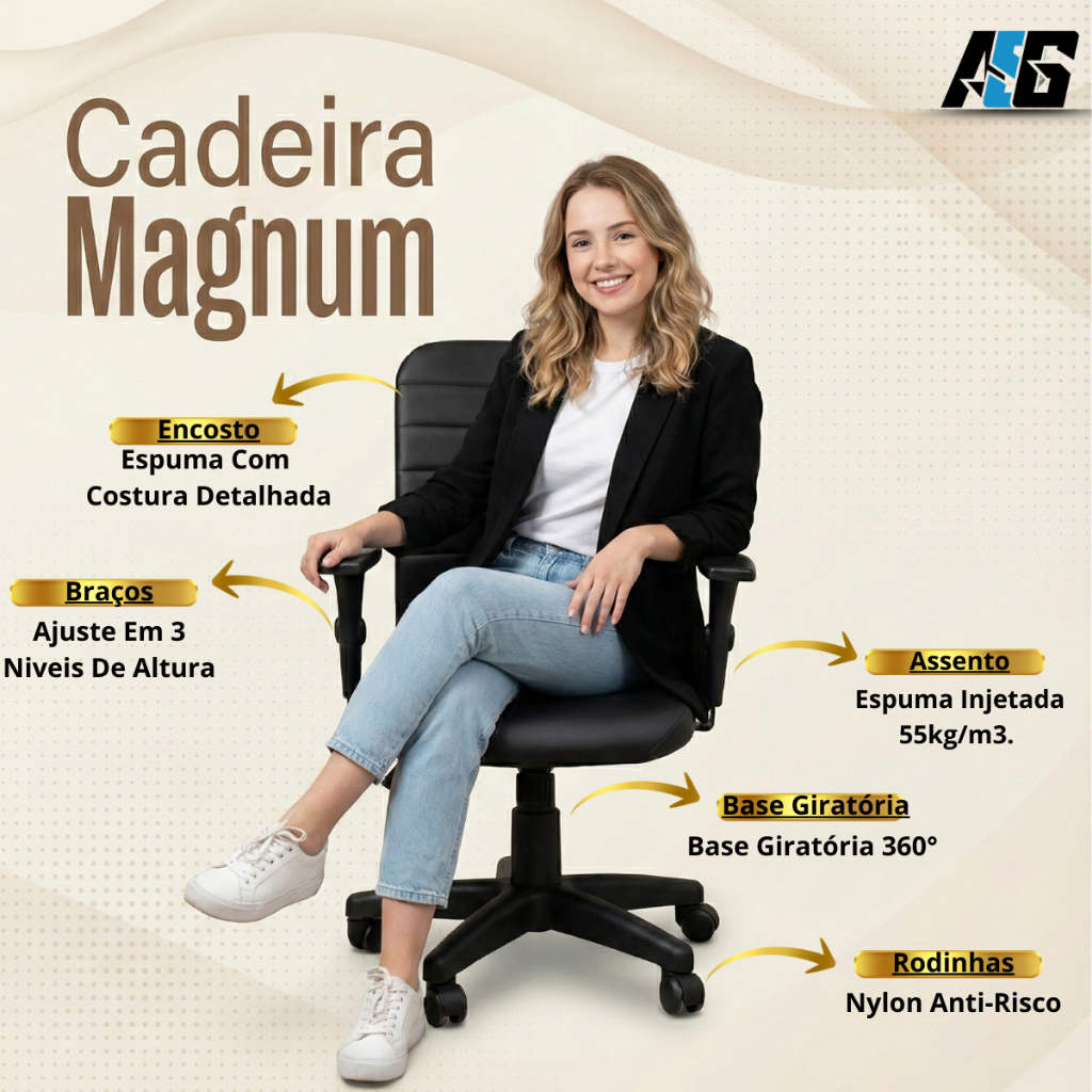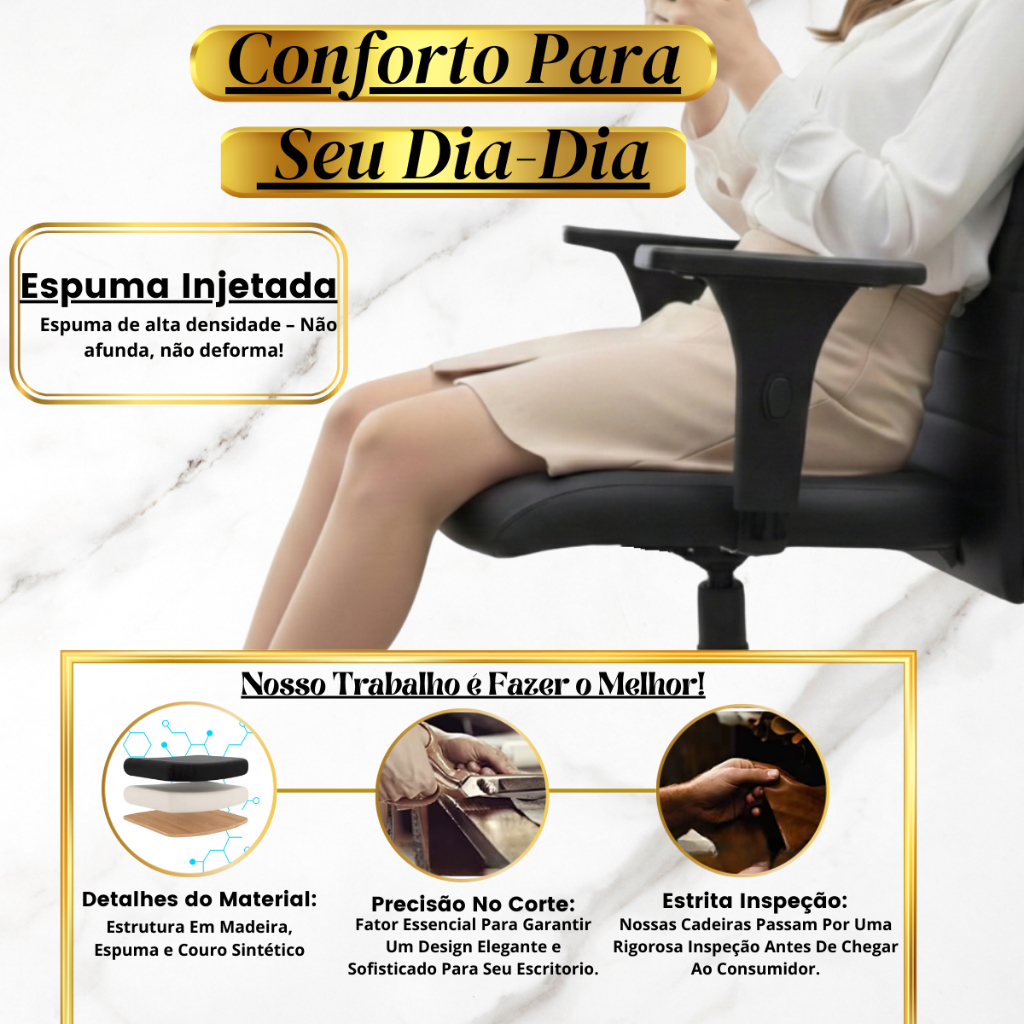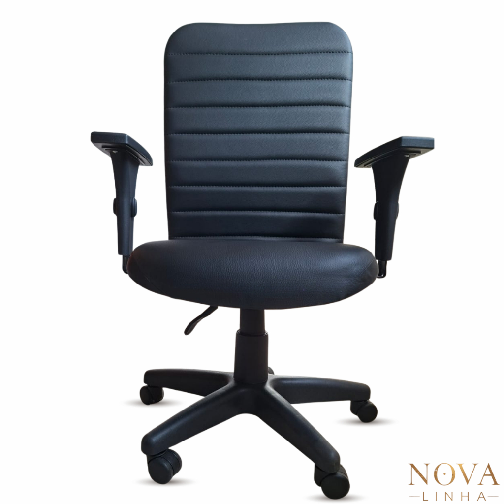Cadeira Escritório Ergonômica NR17 Office Executiva Giratória C/Rodízios Regulável Preta Confortável Costura Esteirinha
