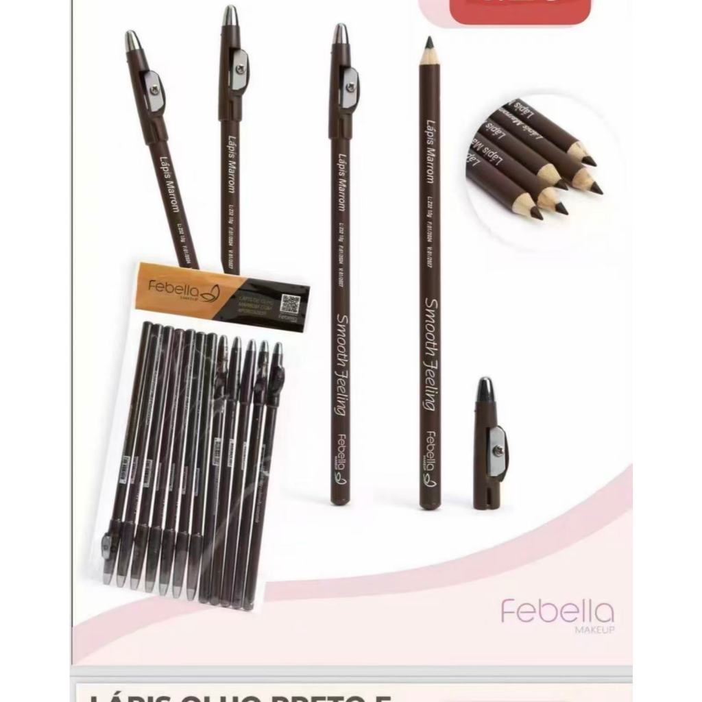 Kit x6 ou x12 Lápis para Olho Preto / Marrom com Apontador VIVAI