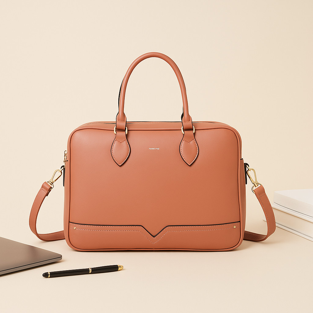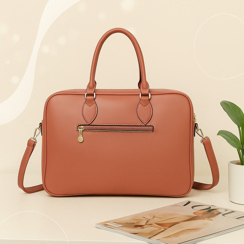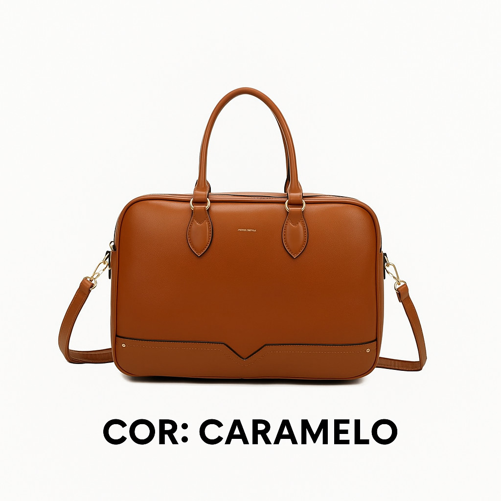 Bolsa Feminina Executiva de Ombro e Mão Couro Sintético Marrom-Rose para Notebook 15" MA5005