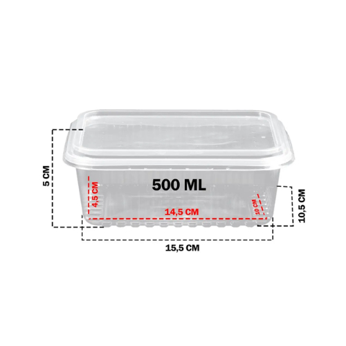Kit 24 Unid. Pote Plastico Retangular Descartável 500 ml Microondas Freezer Marmita Fit - Melhor qualidade do mercado